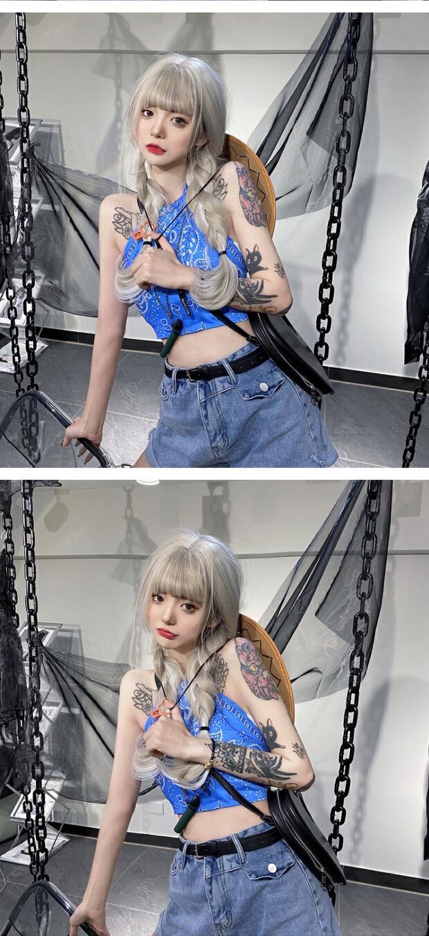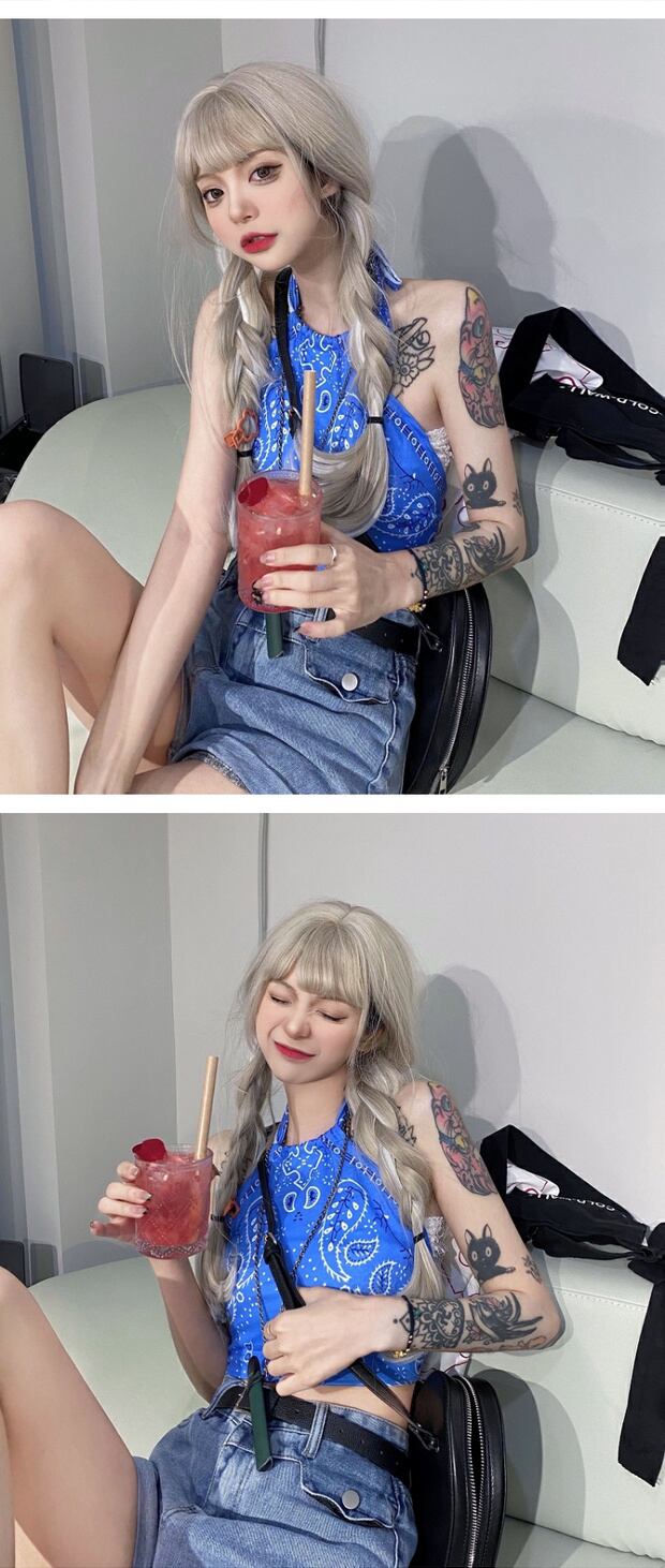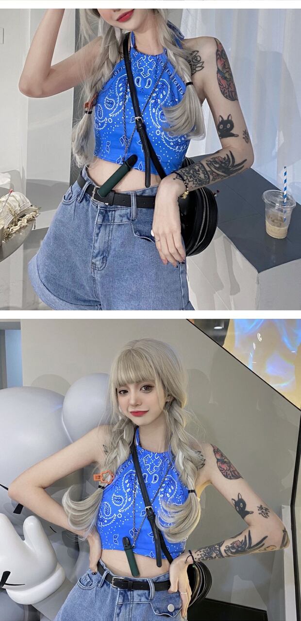 スタイルサマーFlowerデザイン ショートホルタートップス 夏物 フラワーデザイン ケッペル17357980200