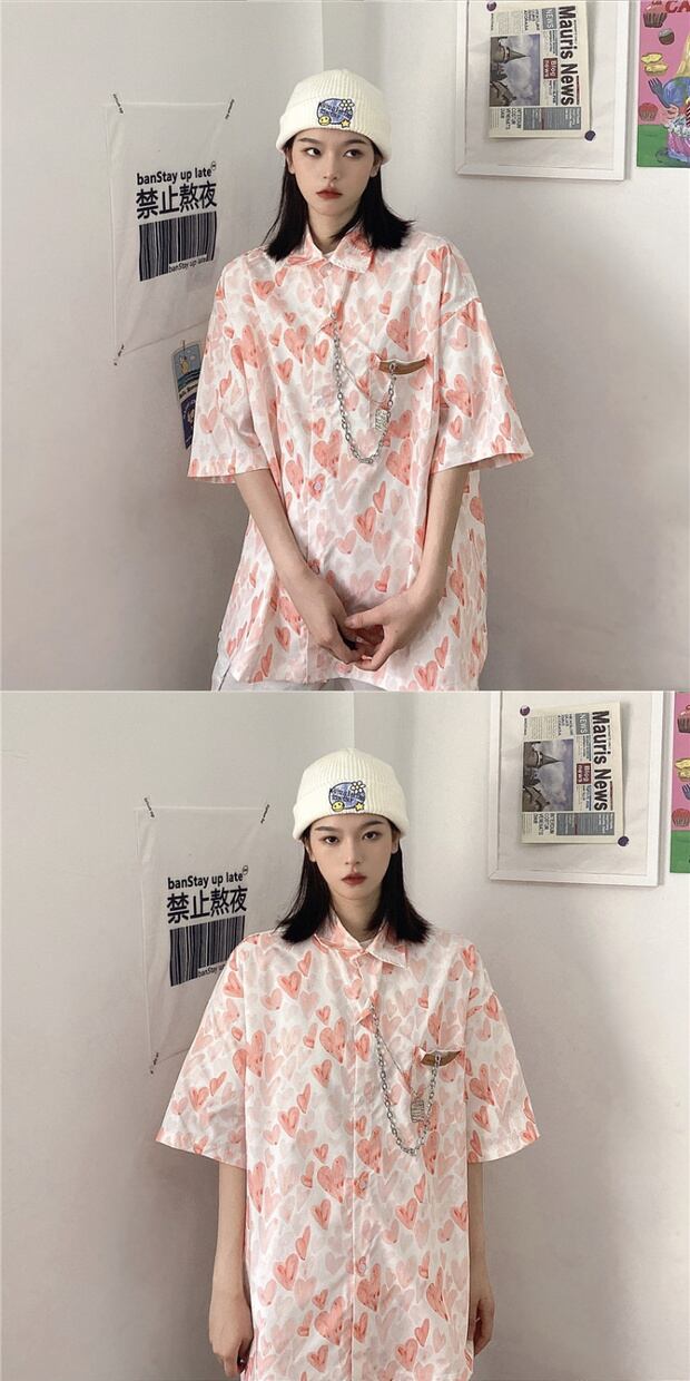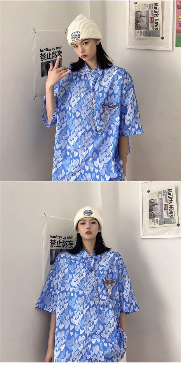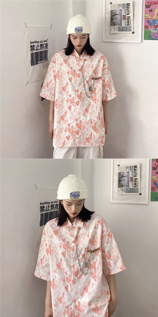 サマースタンダードルーズプリント柄シャツ レトロ 夏物 ケッペル57405295529