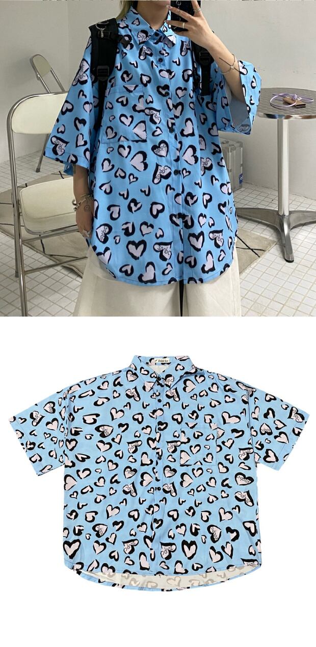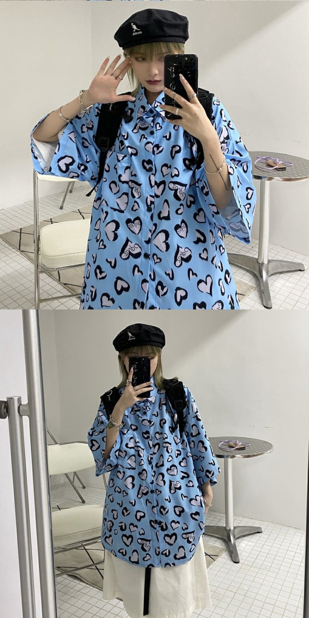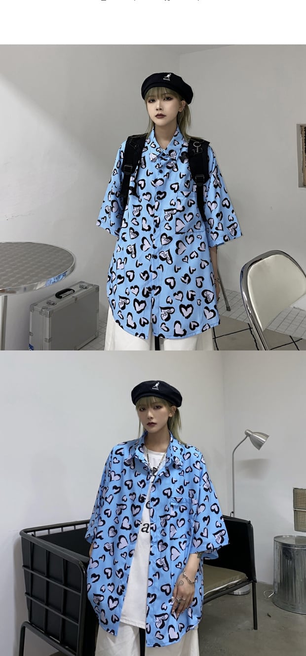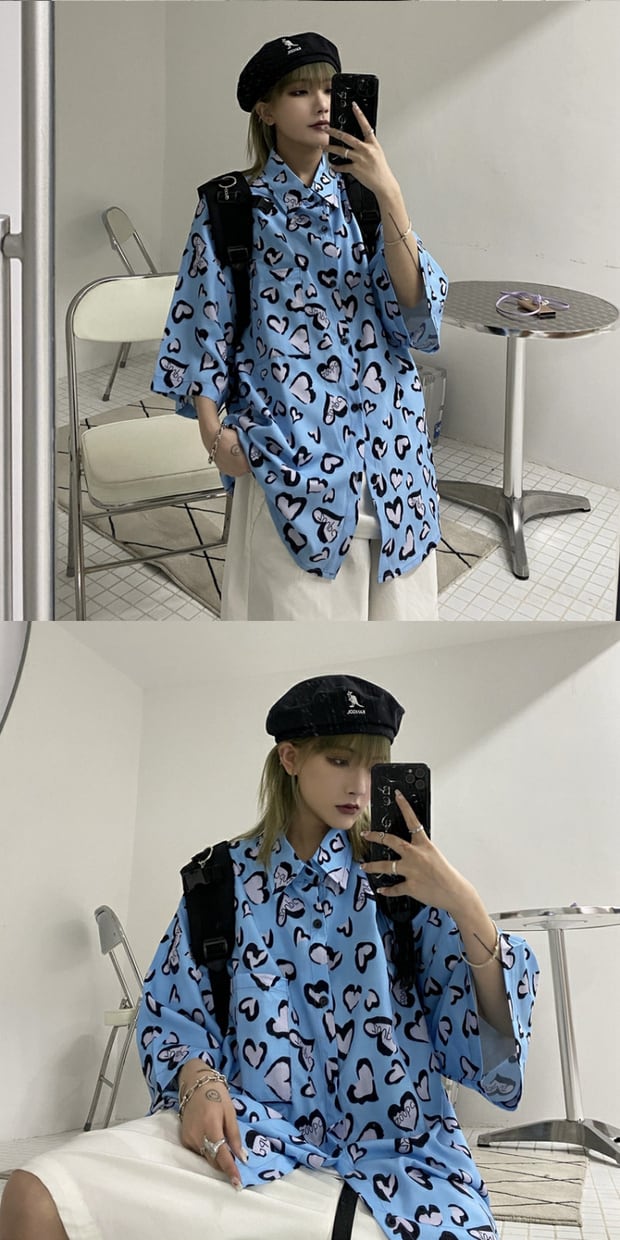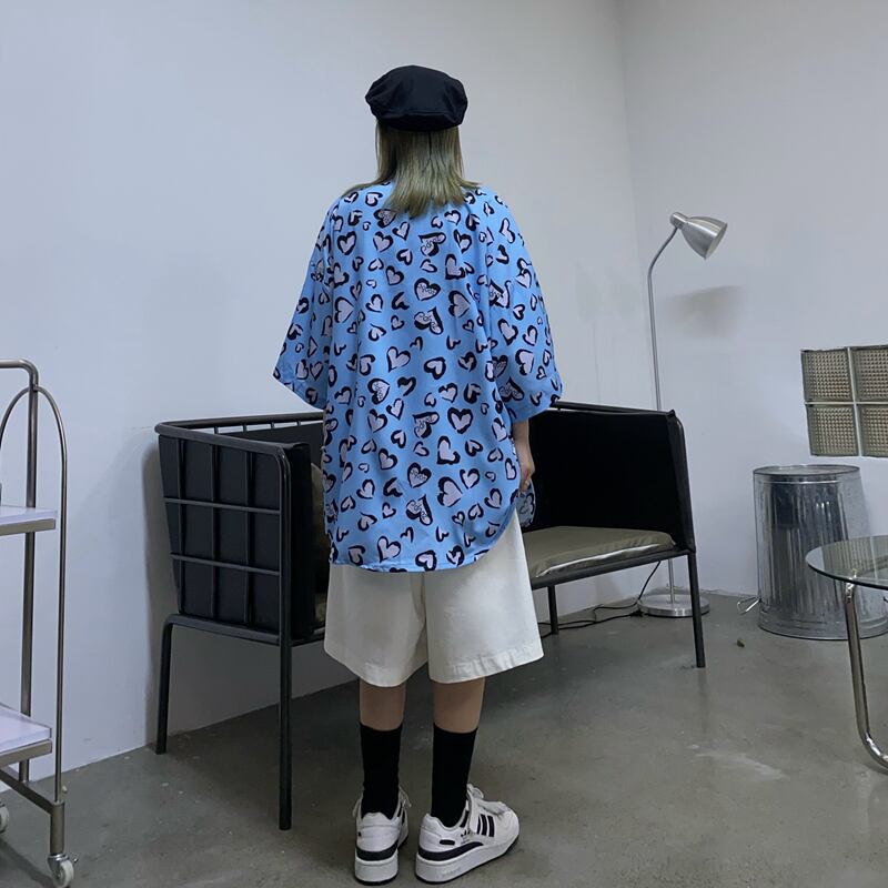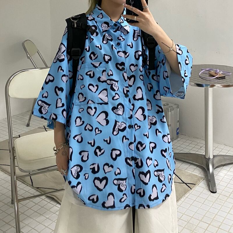 サマールーズシャツ スタイルスタンダードプリント柄レディーストップス レトロ ストリート 夏物 ケッペル20136838031