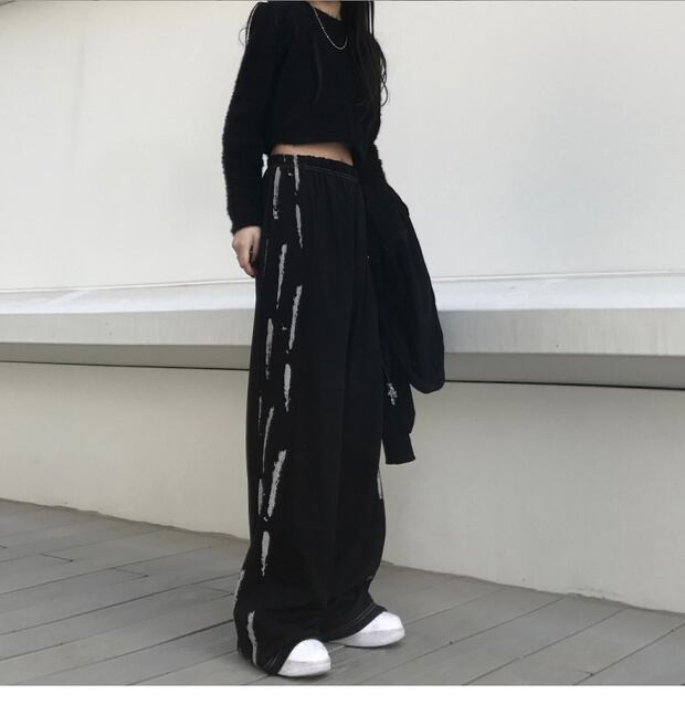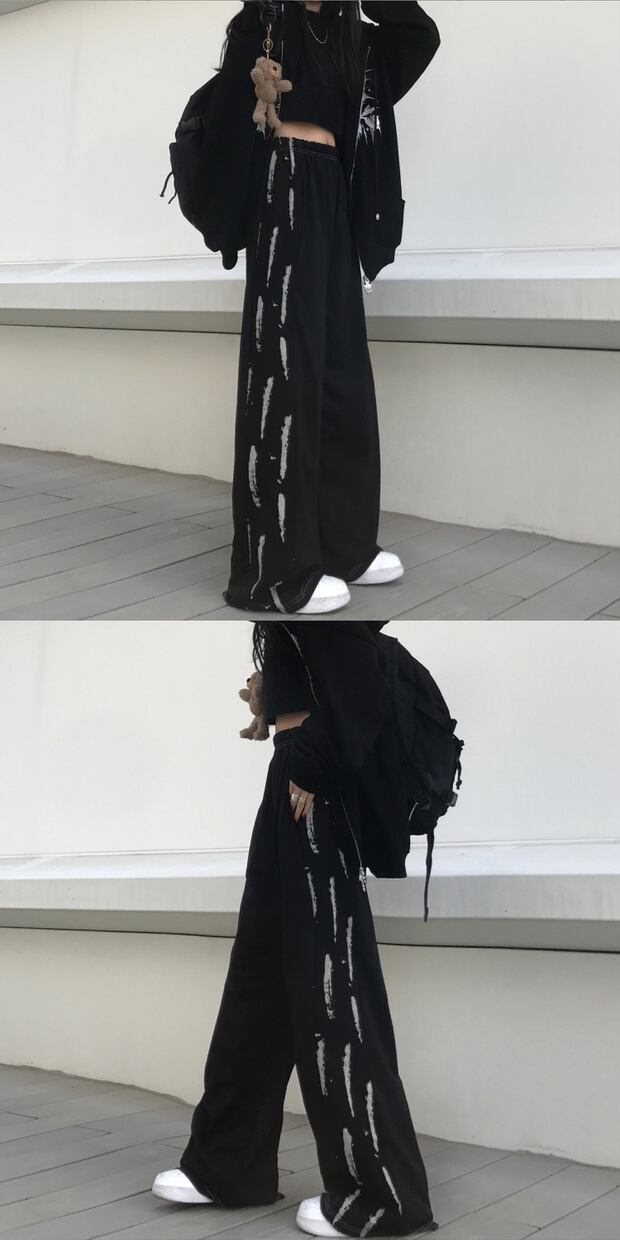 スタイルカジュアルパンツ ハイウェストダークプリント柄 ストリート かわいい ケッペル84252673466