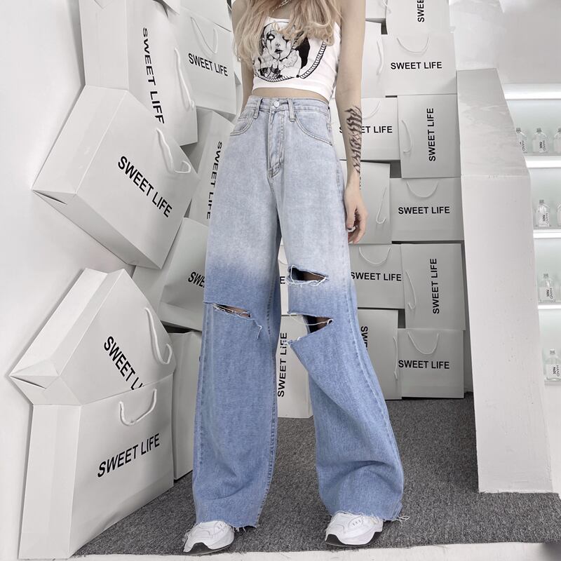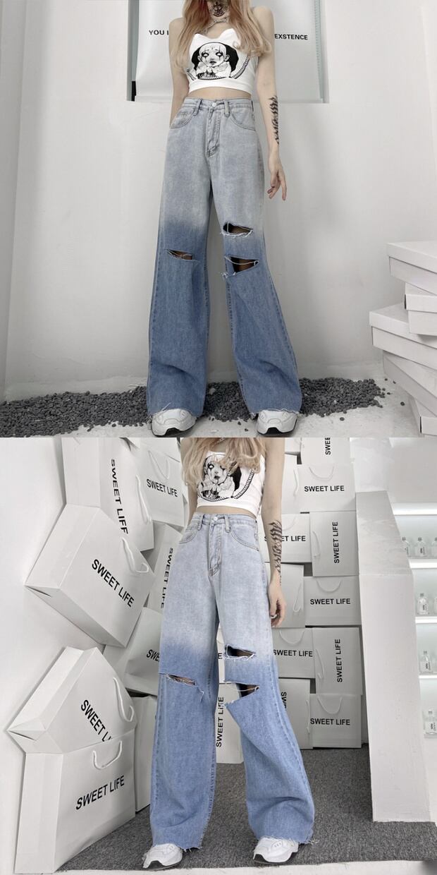 スタイルジーンズ ハイウェストウェストルーズスタンダードパンツ レトロ ストリート かわいい ケッペル3425806978