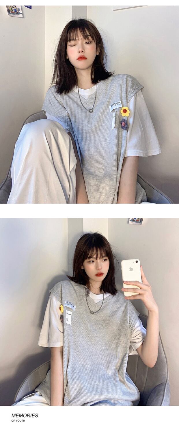 サマーカジュアルトップス ルーズレディースホワイトシャツ スタンダード レトロ 夏物 ケッペル7260209052