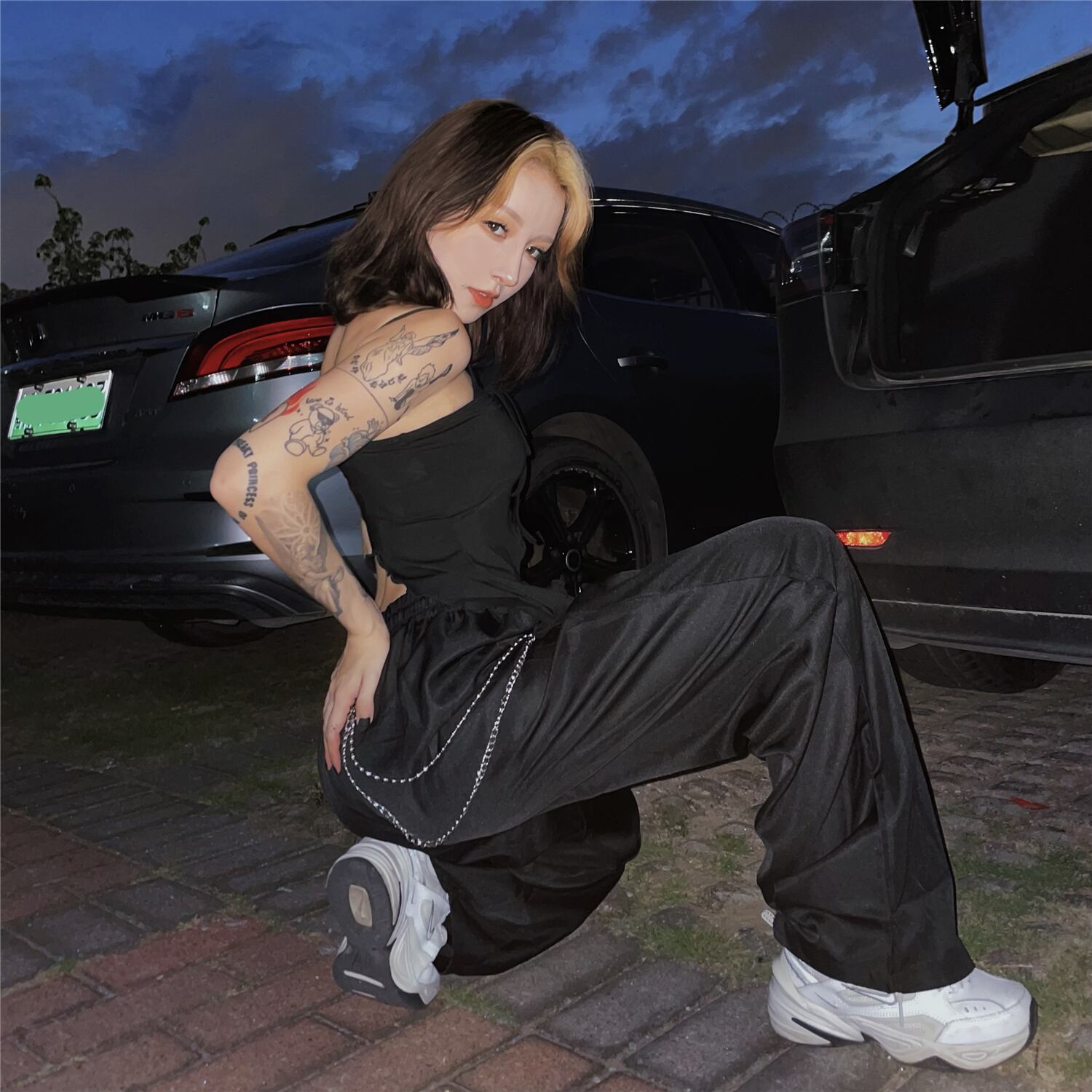 サマーブラックカジュアルパンツ ストライプルーズレディースハイウェストウェスト 夏物 ケッペル78624607288
