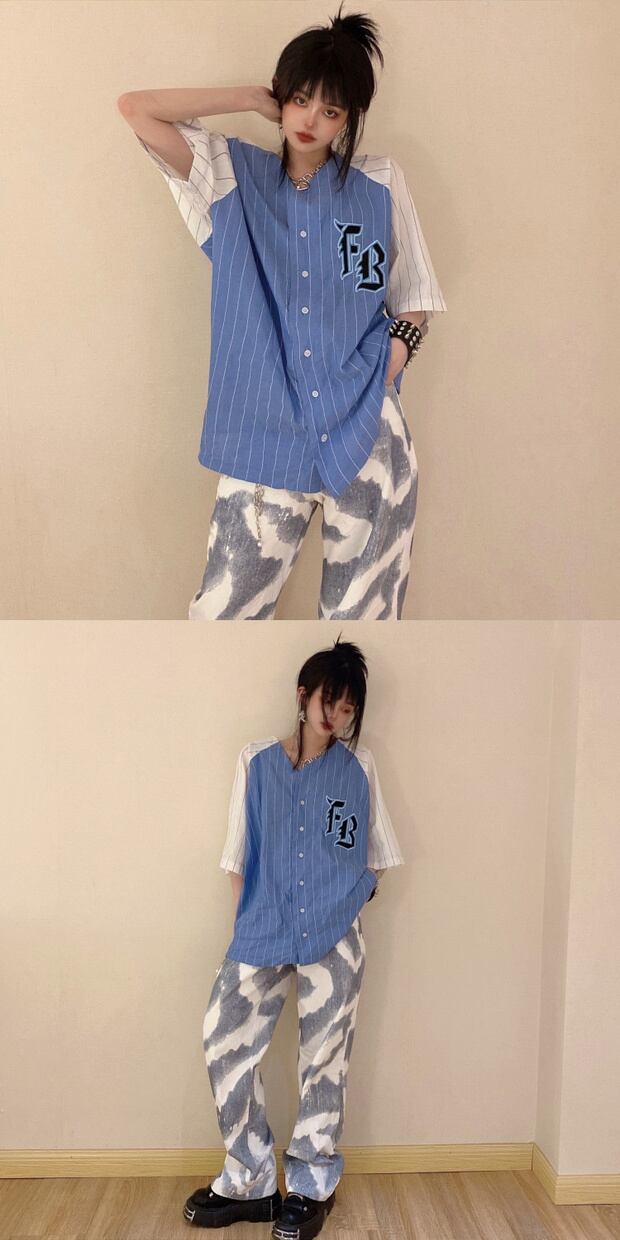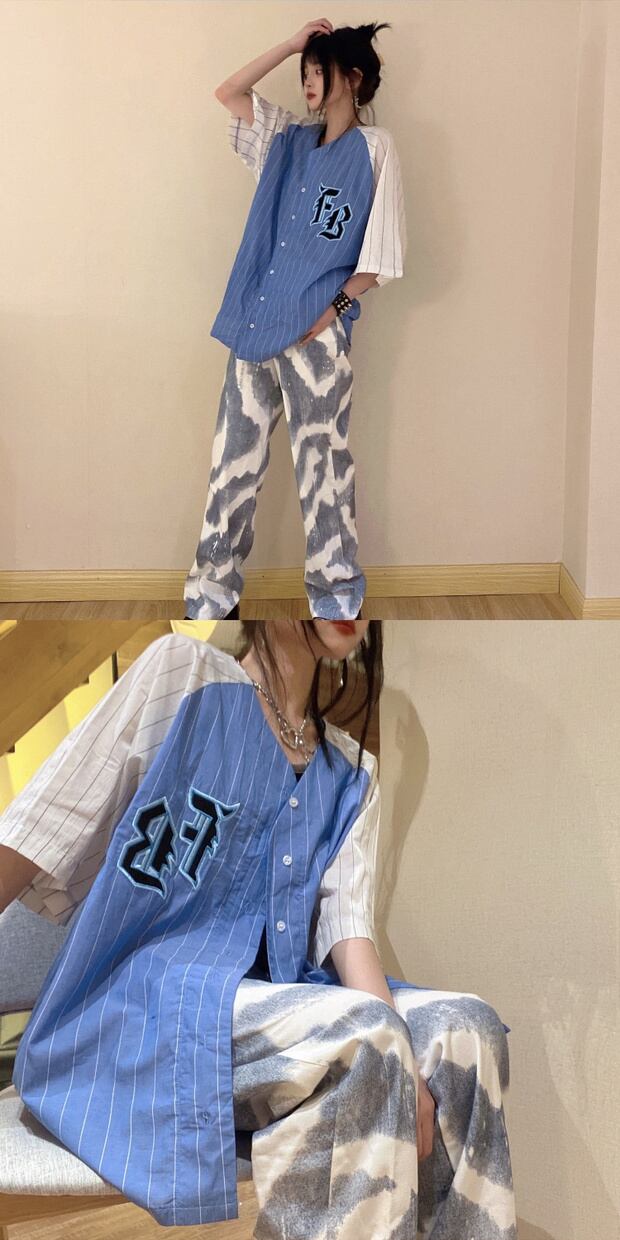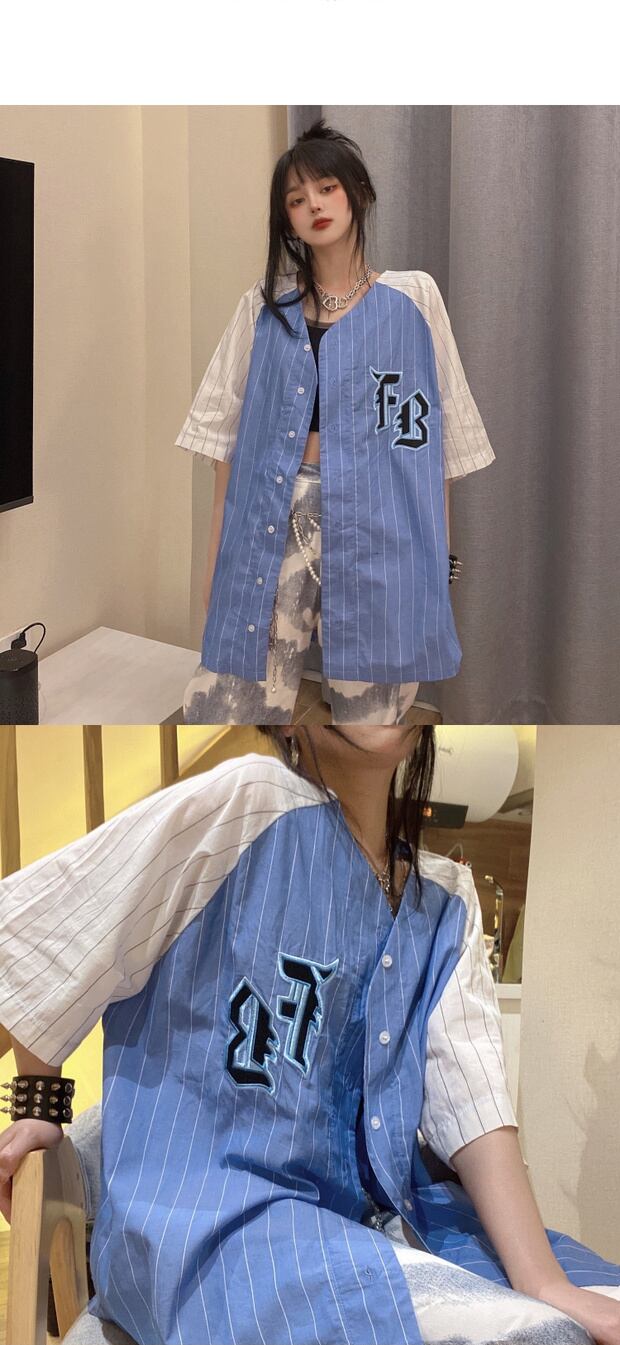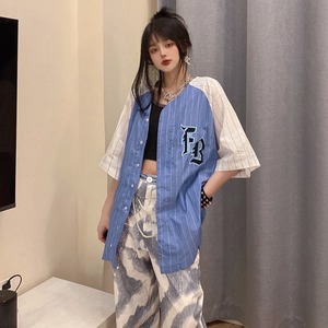サマールーズシャツ スタンダードストライプTシャツ レディースカーディガン レトロ 夏物 ケッペル29199925760