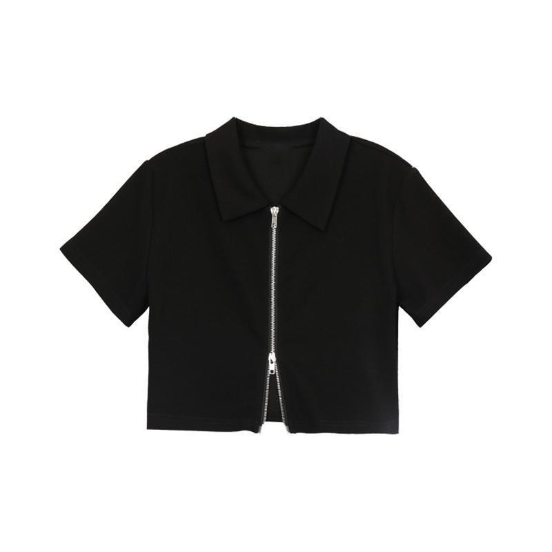サマーショートTシャツ ブラックハイウェストセーター スタンダードカラートップス レトロ 夏物 ケッペル10803744645