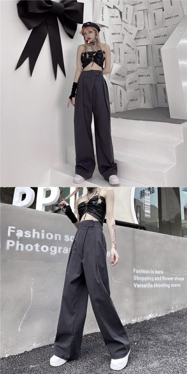スプリングサマースタイルハイウェストウェストルーズワイドレッグカジュアル かわいい 春物 夏物 ワイドパンツ ケッペル59896528277