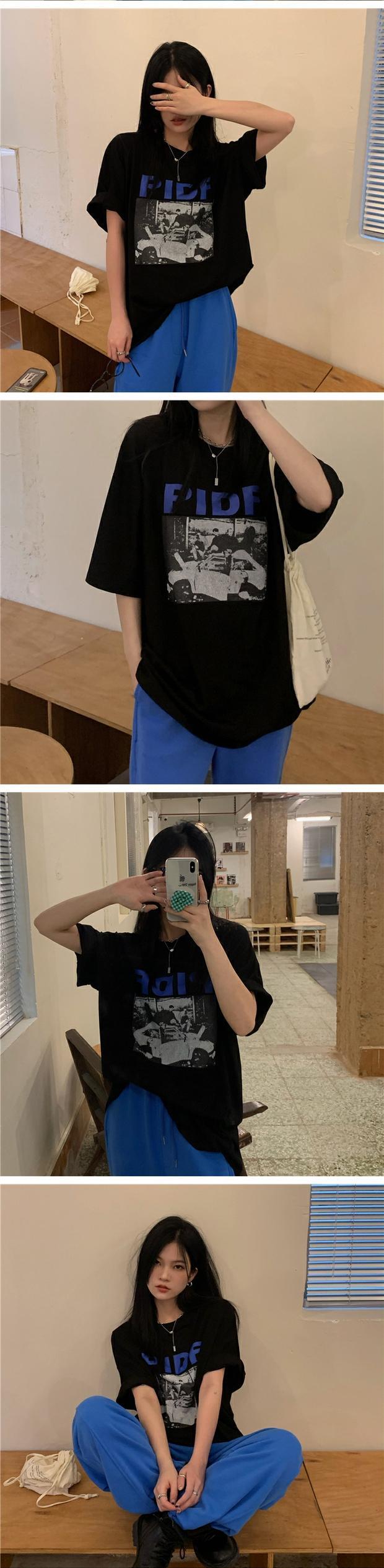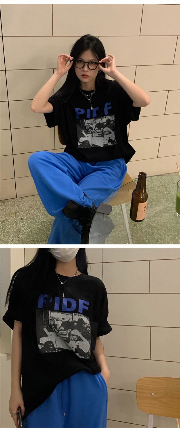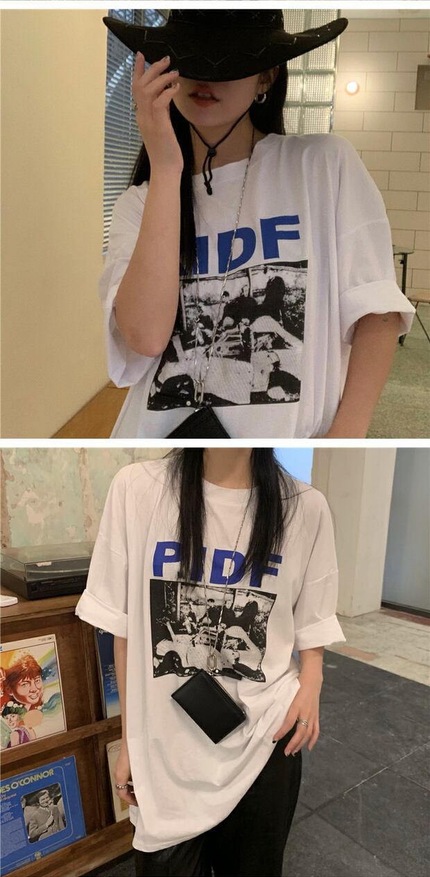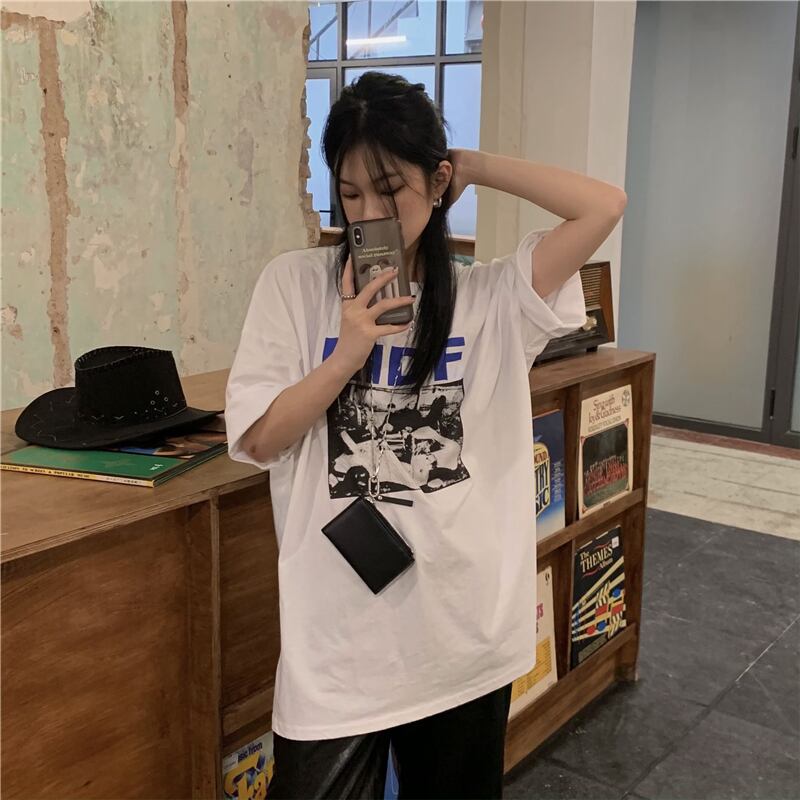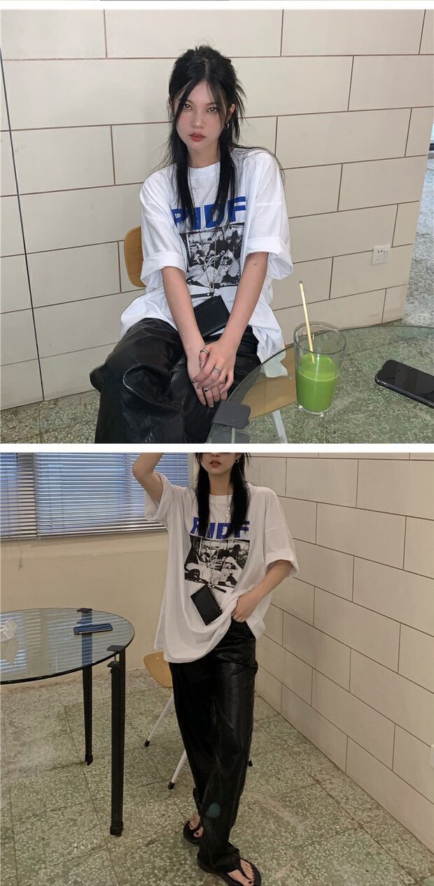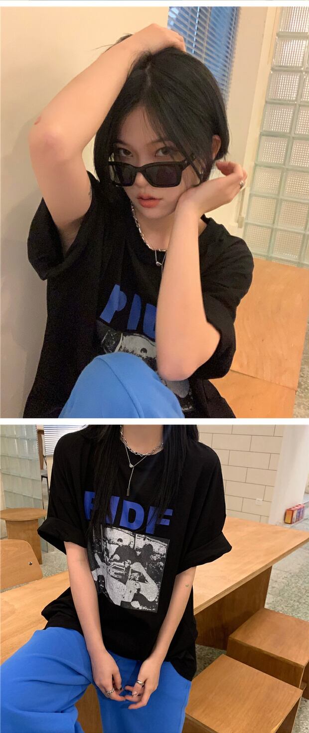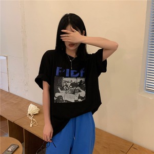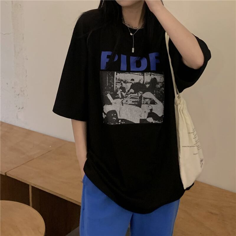サマーカジュアルTシャツ スタイルプリント柄ルーズラウンドネックトップス 夏物 Oネック ケッペル94590015357