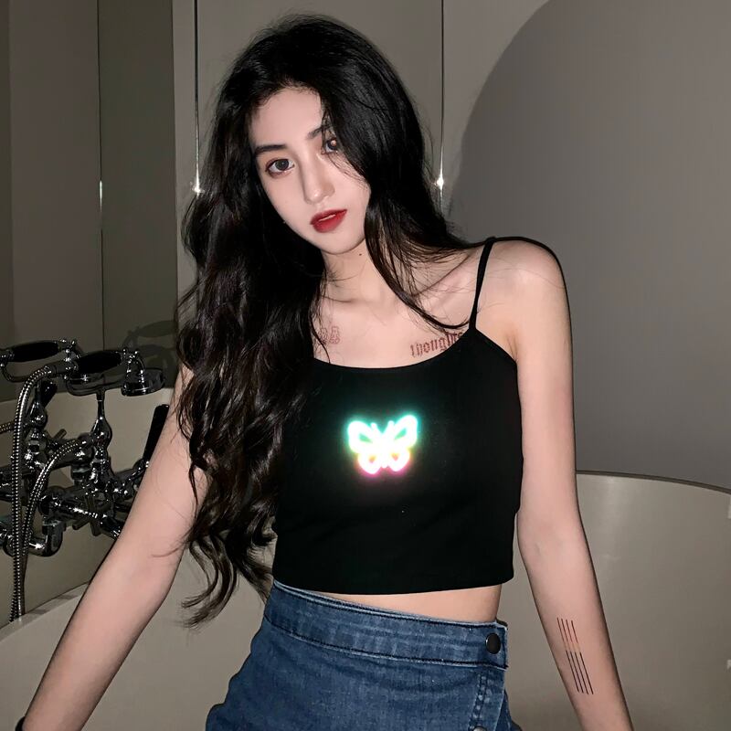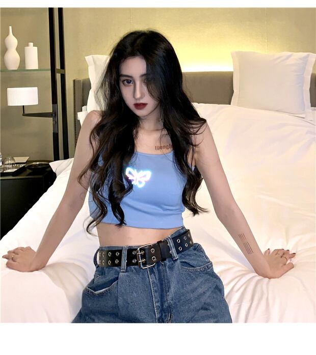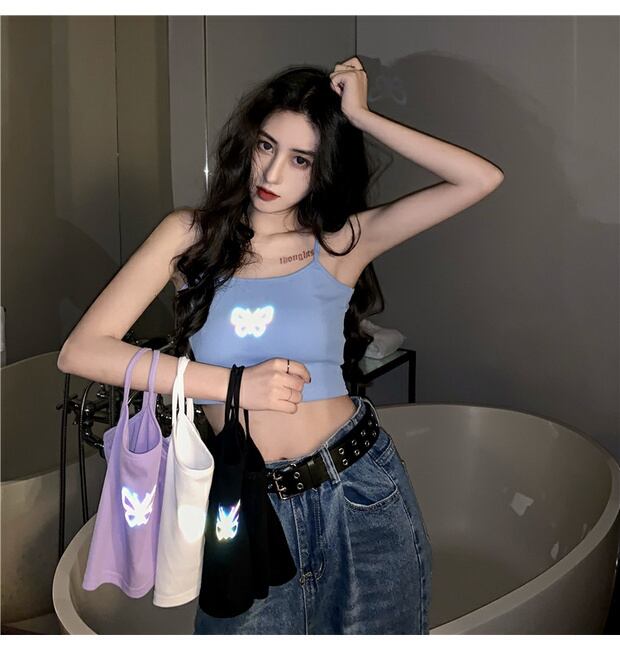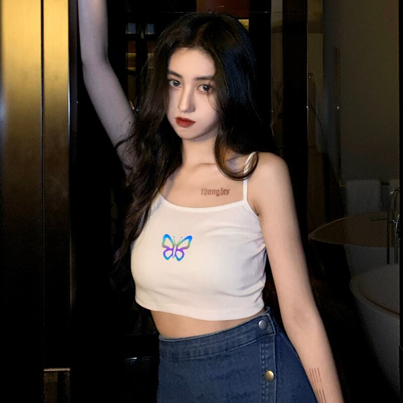 サマートップス Butterflyデザイン プリントスリムショート 夏物 ケッペル99812874158