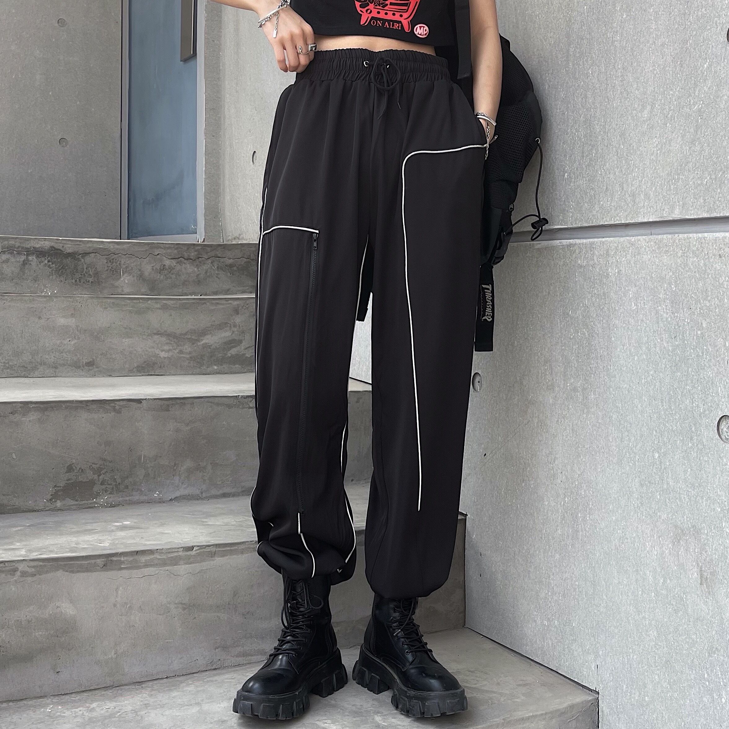スタイルサマールーズワイドレッグパンツ ハイウェストウェストストライプジッパーカジュアル かわいい 夏物 ワイドパンツ ケッペル24458850900