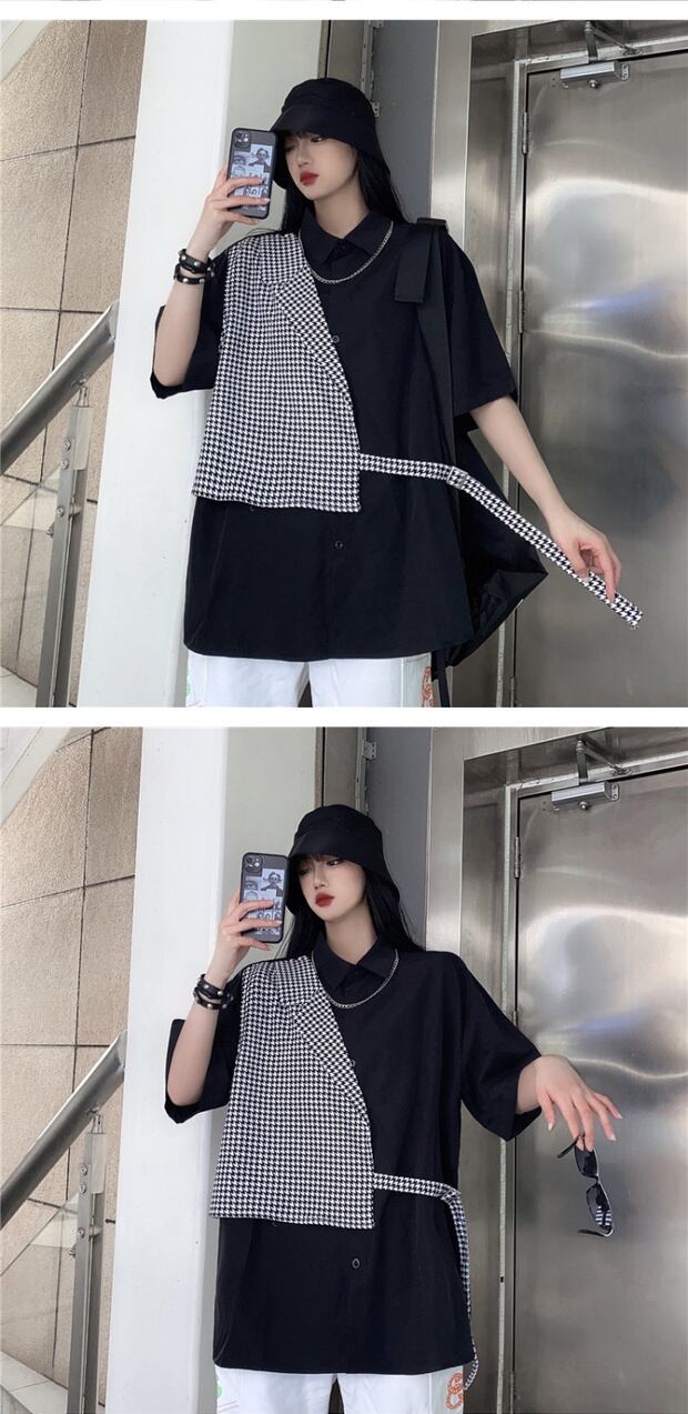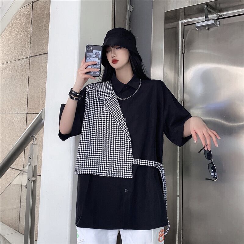 スタイルルーズTシャツ シャツ スタンダードダーク レトロ 大きめサイズ かわいい ステッチ ケッペル47137254559