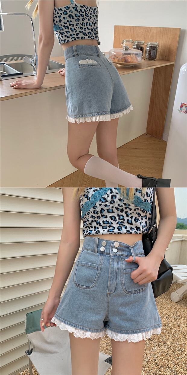 サマーショーツ ハイウェストウェストカジュアルパンツ レース 夏物 ブルマー ステッチ ケッペル9908504961