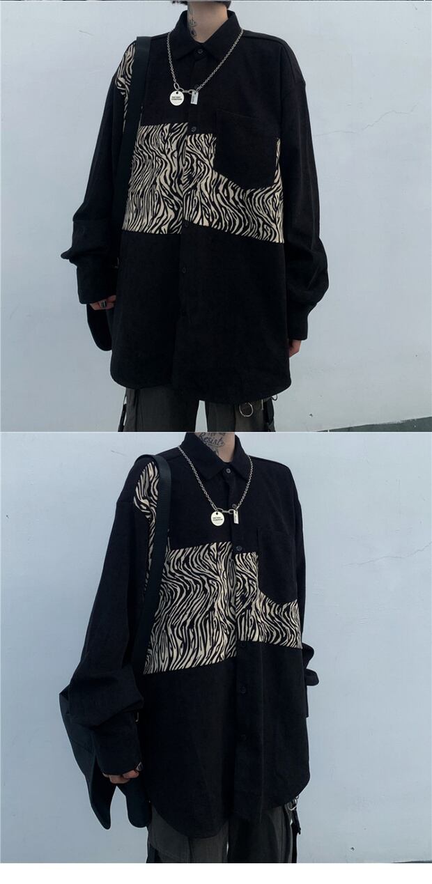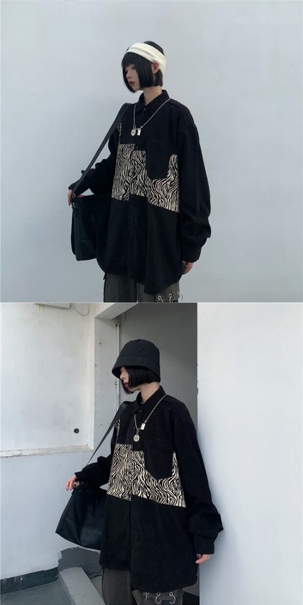 ダークルーズシャツ ジャケット パターンプリントコーデュロイトップス ステッチ ケッペル33721742447