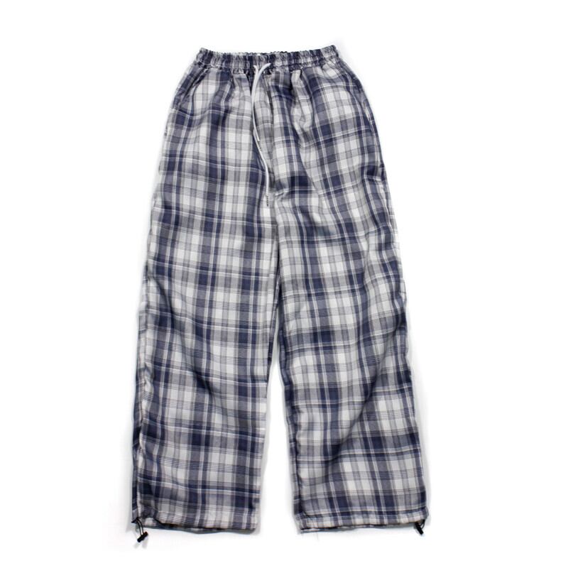 サマーワイドレッグパンツ レディースカジュアル格子柄スタンダード レトロ 夏物 ワイドパンツ ケッペル97415154926