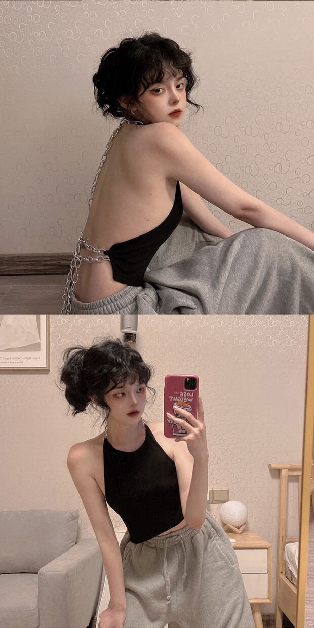チェーン バックスリムホルター 大人ガーリー スウィート キュート カジュアル ケッペル1545154093