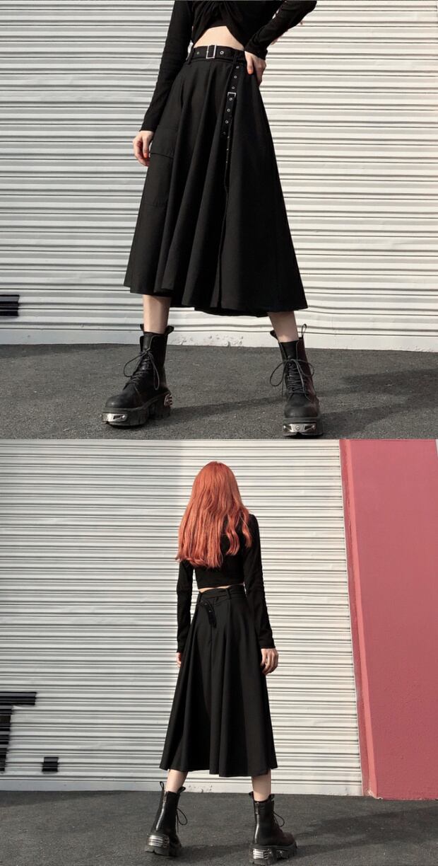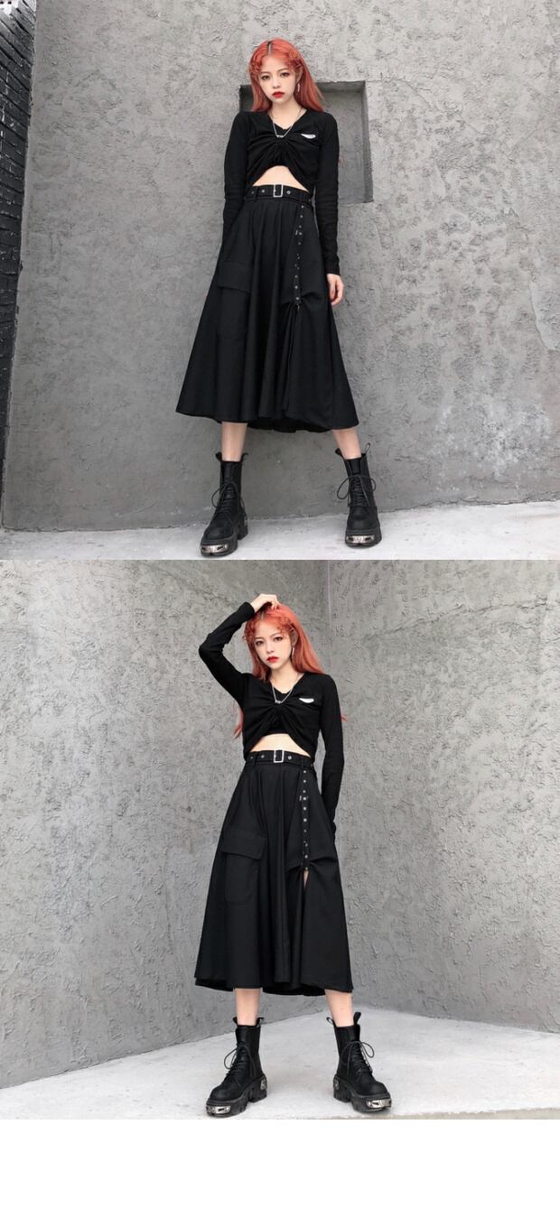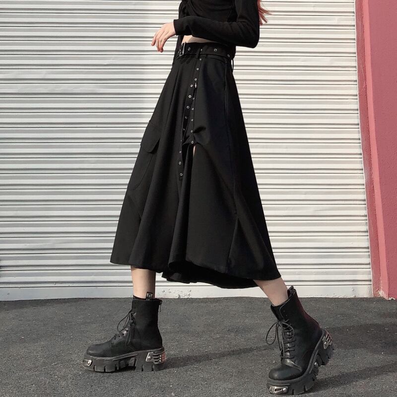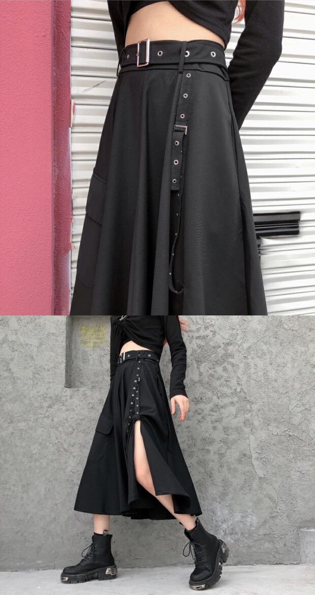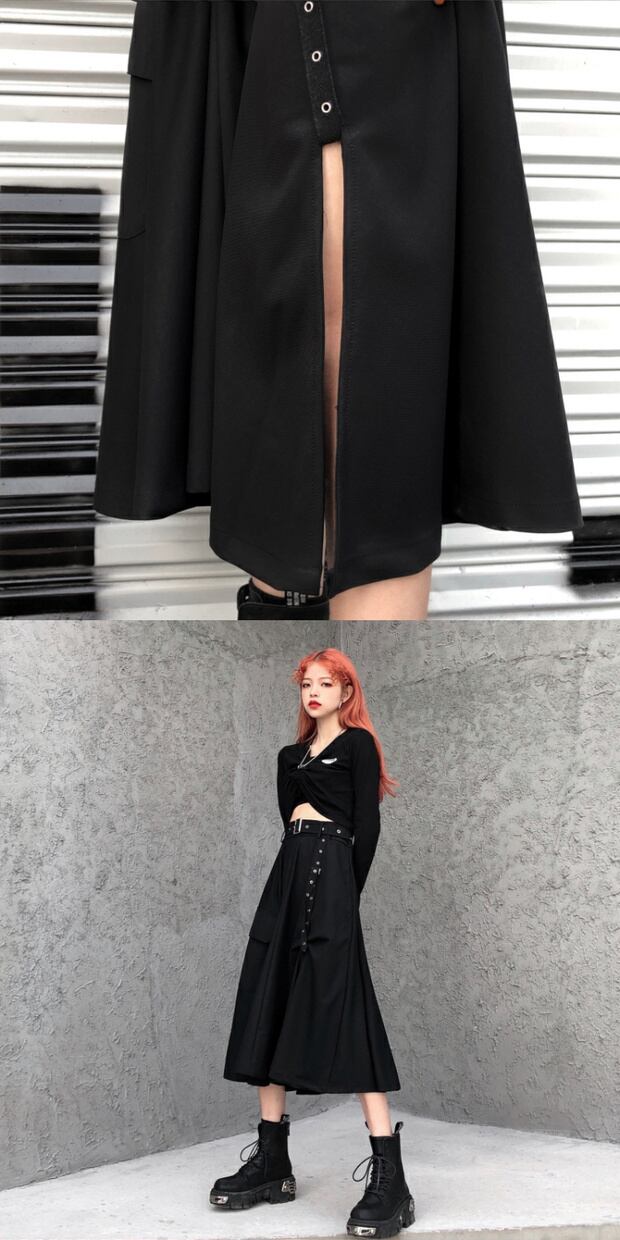 ダークスタイルスリムロングスカート メタルベルト Aライン ハーネス ケッペル63875502374