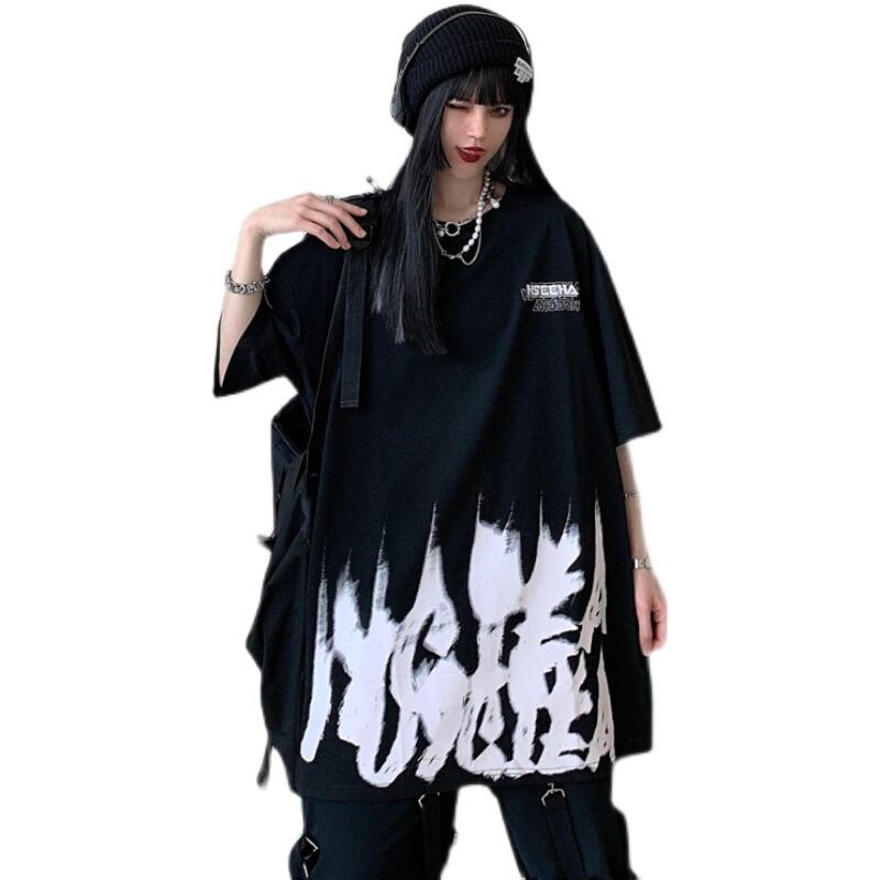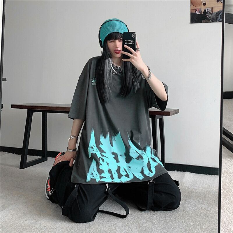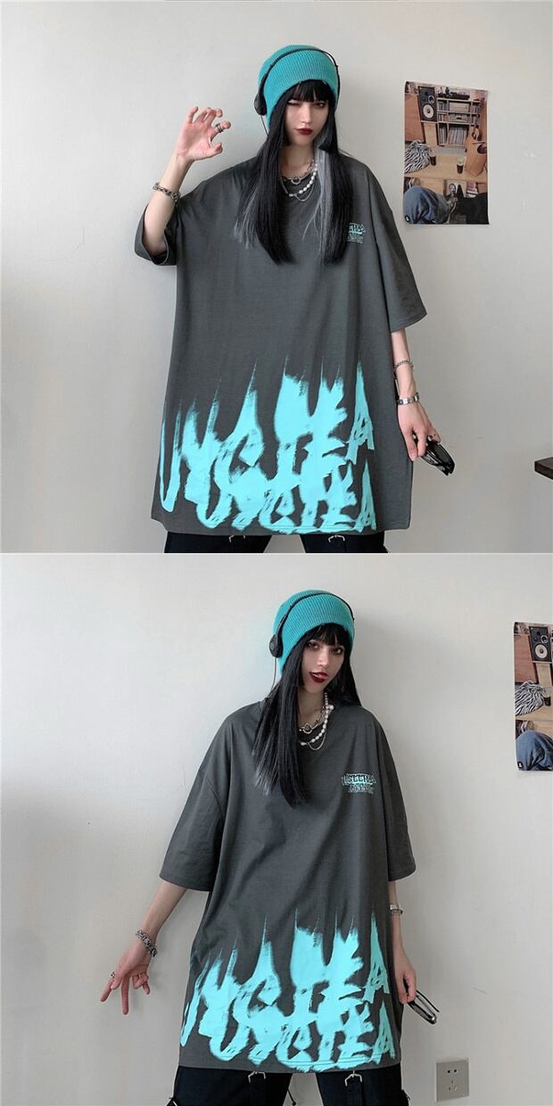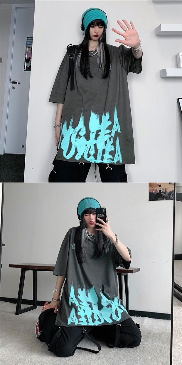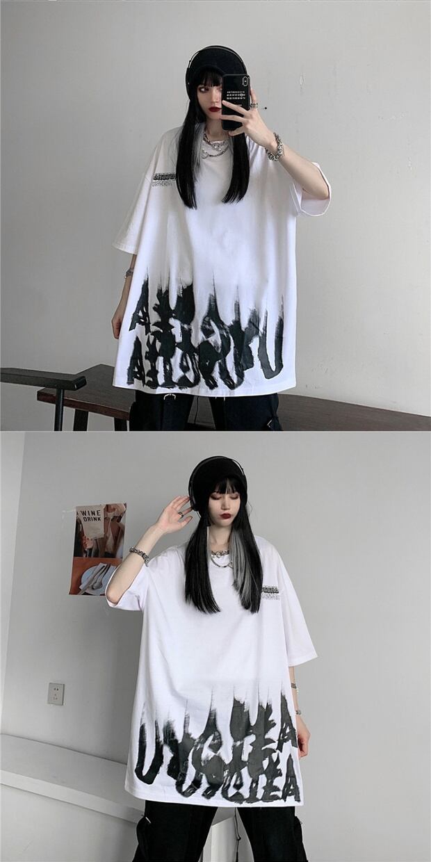 スタイルTシャツ ルーズプリントトップス ダークブラックカジュアル ストリート 大きめサイズ かわいい ケッペル69374015157