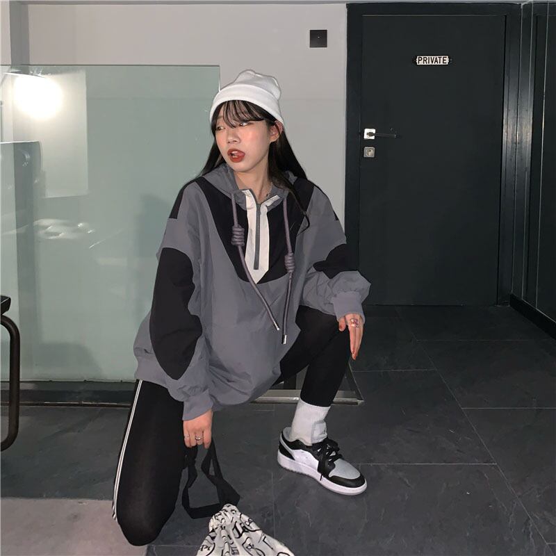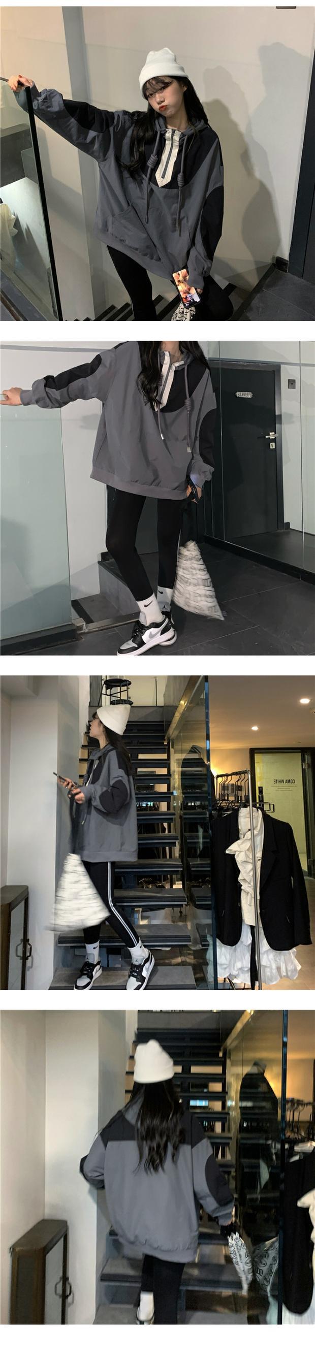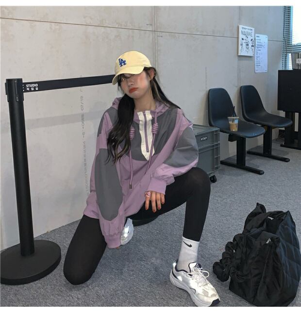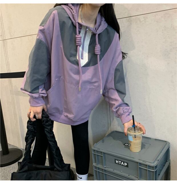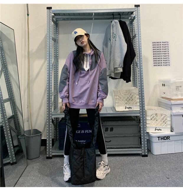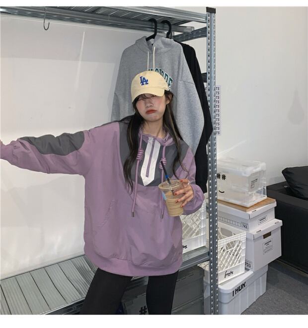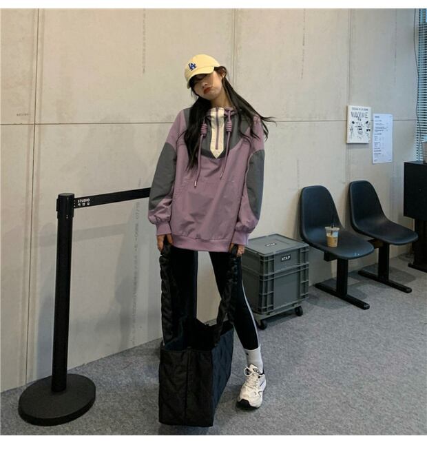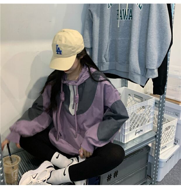 オータムルーズカジュアルジャケット レディースフードセーター ストリート 秋物 ステッチ ケッペル46489523091