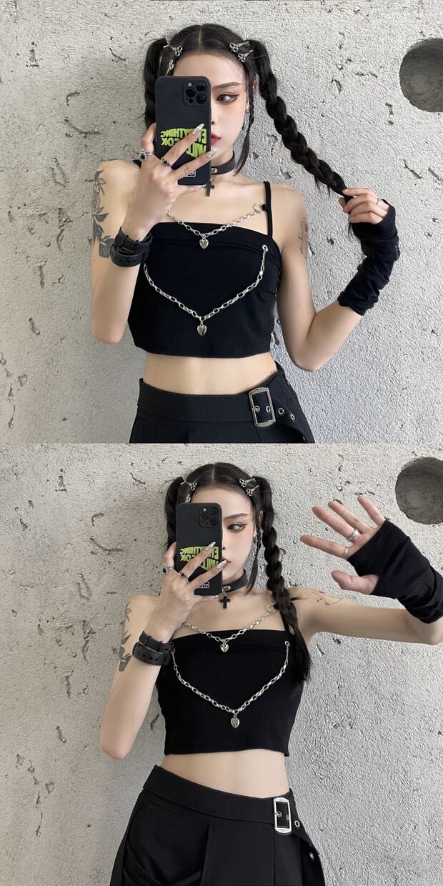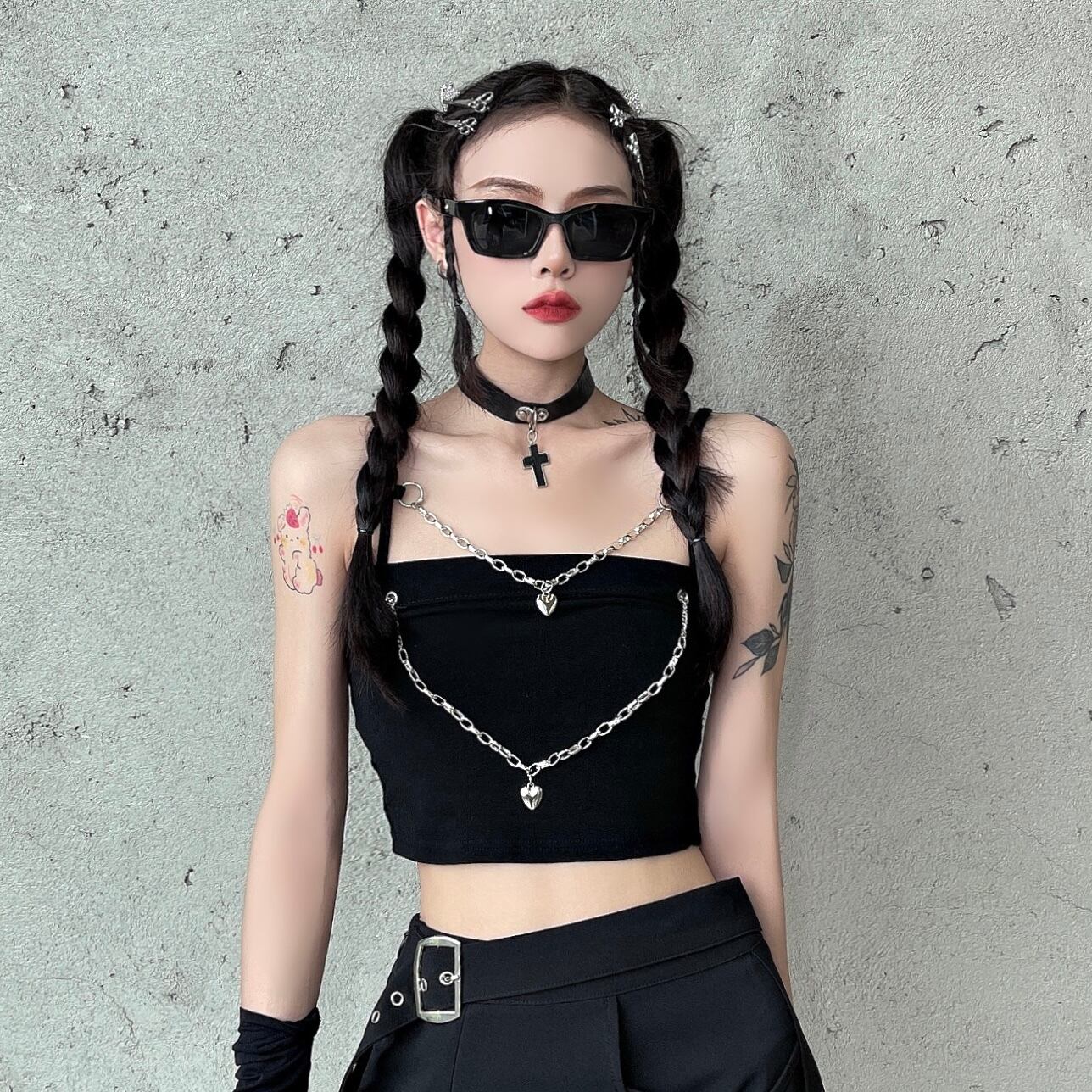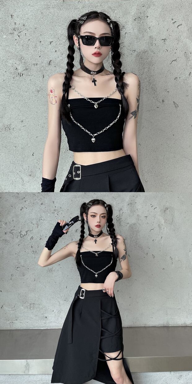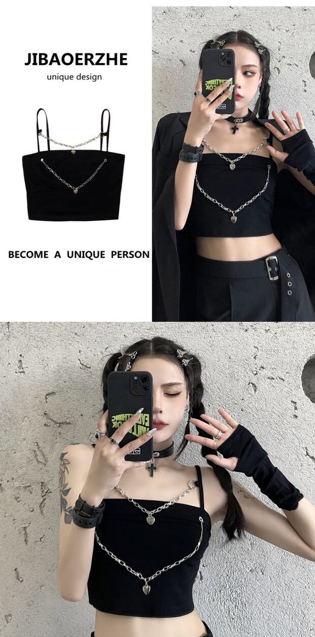 ダークサマースタイルチェーン ショートトップス 夏物 ケッペル49120673871