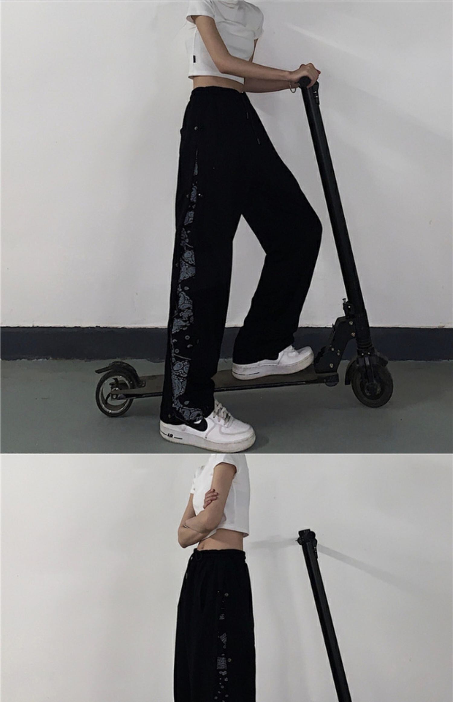 スプリングスリムカジュアルFlowerデザイン パンツ スタンダード レトロ 春物 フラワーデザイン ステッチ ケッペル13055810635