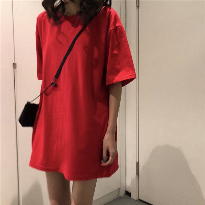 スタイルルーズソリッド カラーサマーカジュアルTシャツ スタンダードラウンドネック コットン レトロ かわいい 夏物 Oネック ソリッドカラー ケッペル53852325626