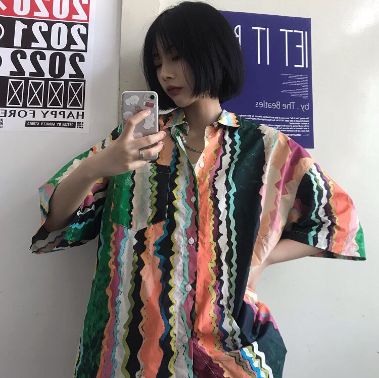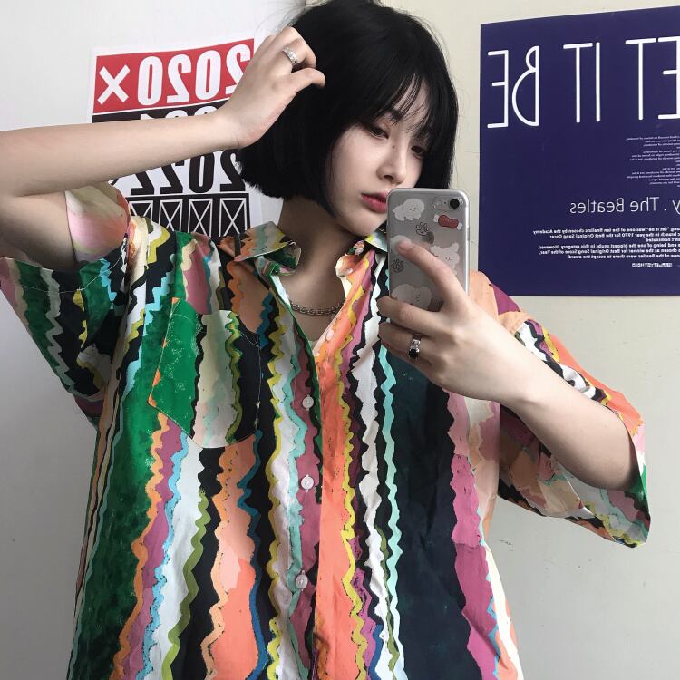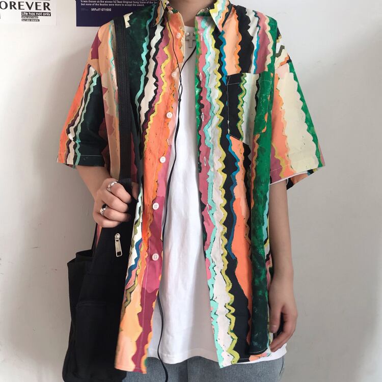 サマールーズシャツ スタンダードプリントカジュアルカーディガン レトロ 夏物 ケッペル94356625780