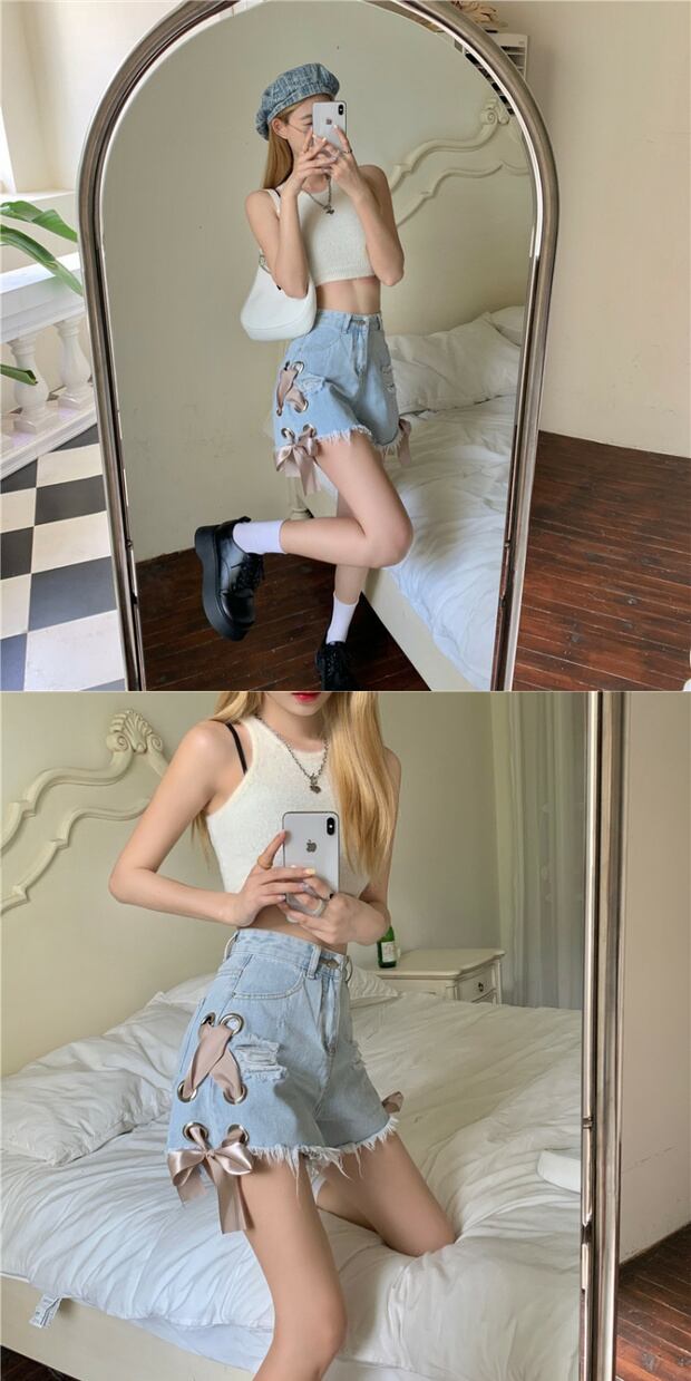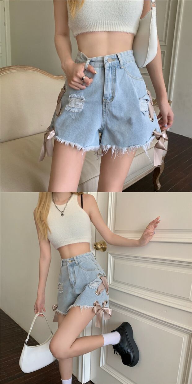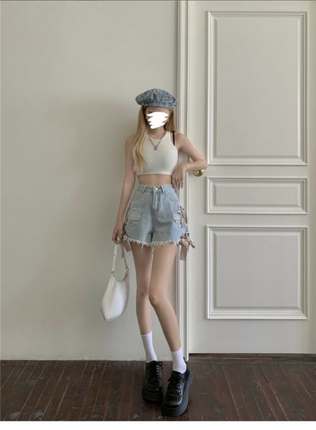 カジュアルショーツ ジーンズ ハイウェストウェスト薄手Aラインパンツ ブルマー ケッペル20741723825