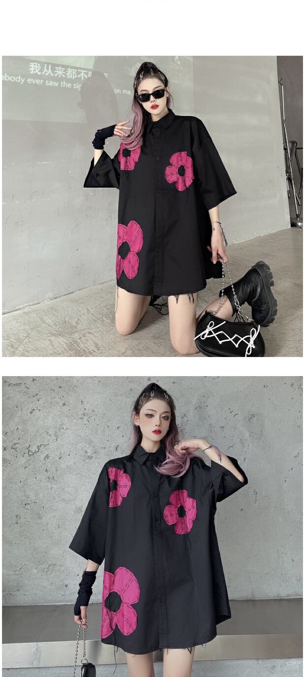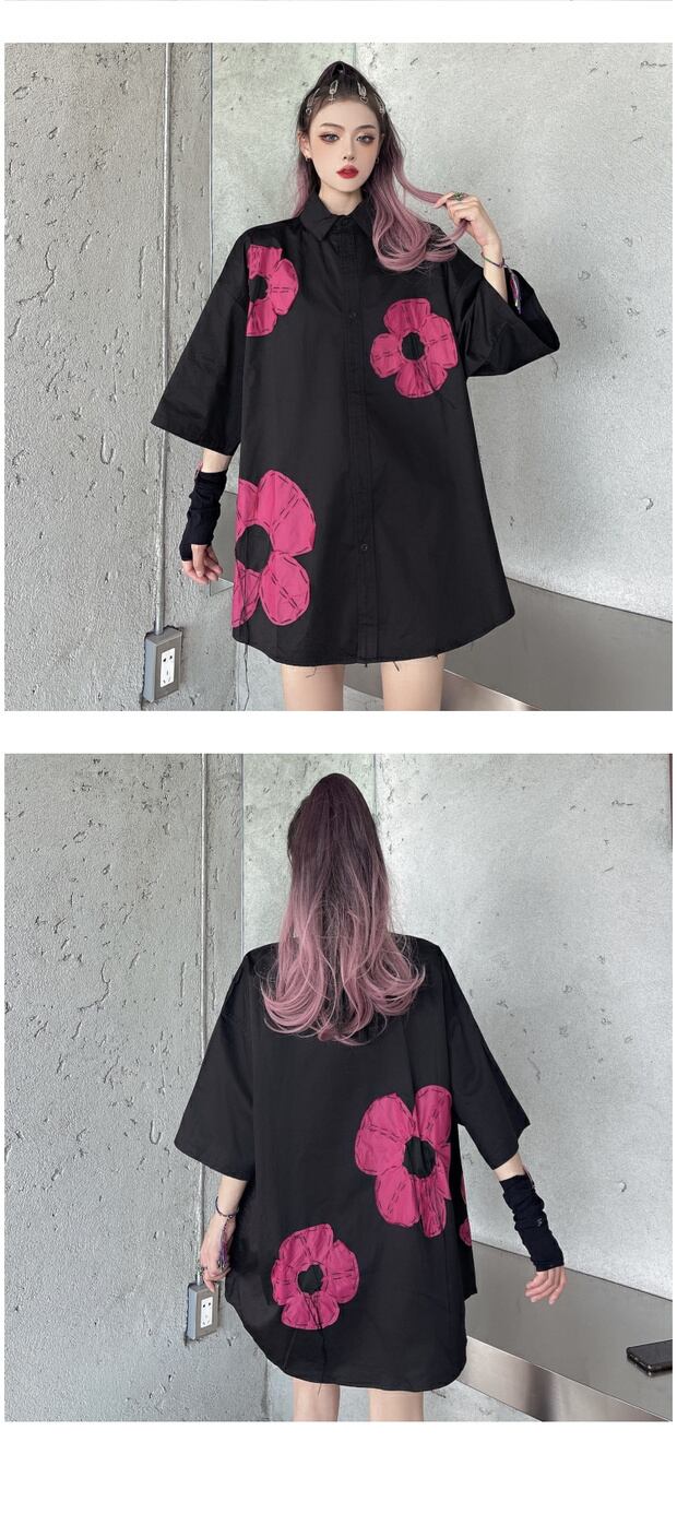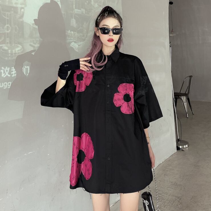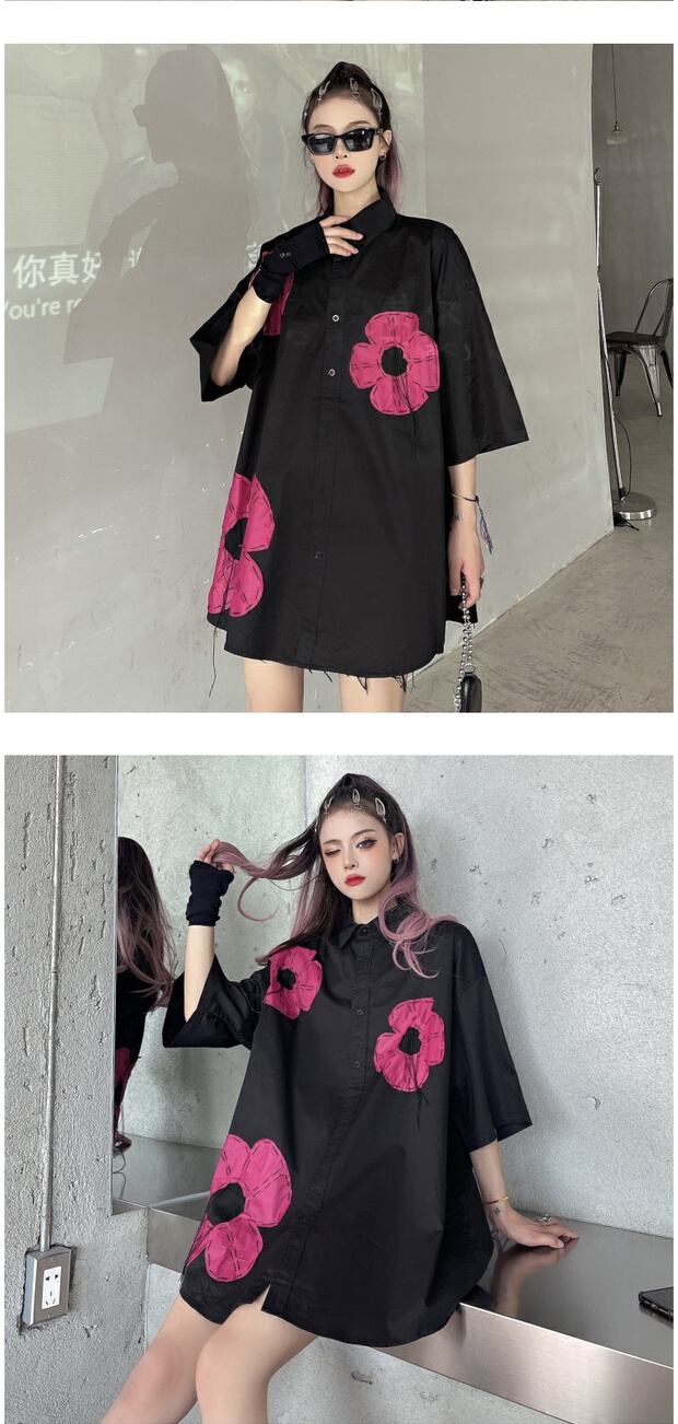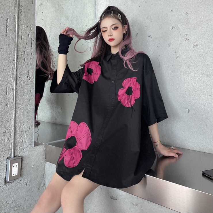 サマーカラーシャツ レディースルーズロングブラックスリムトップス 大きめサイズ 夏物 ケッペル78903289954