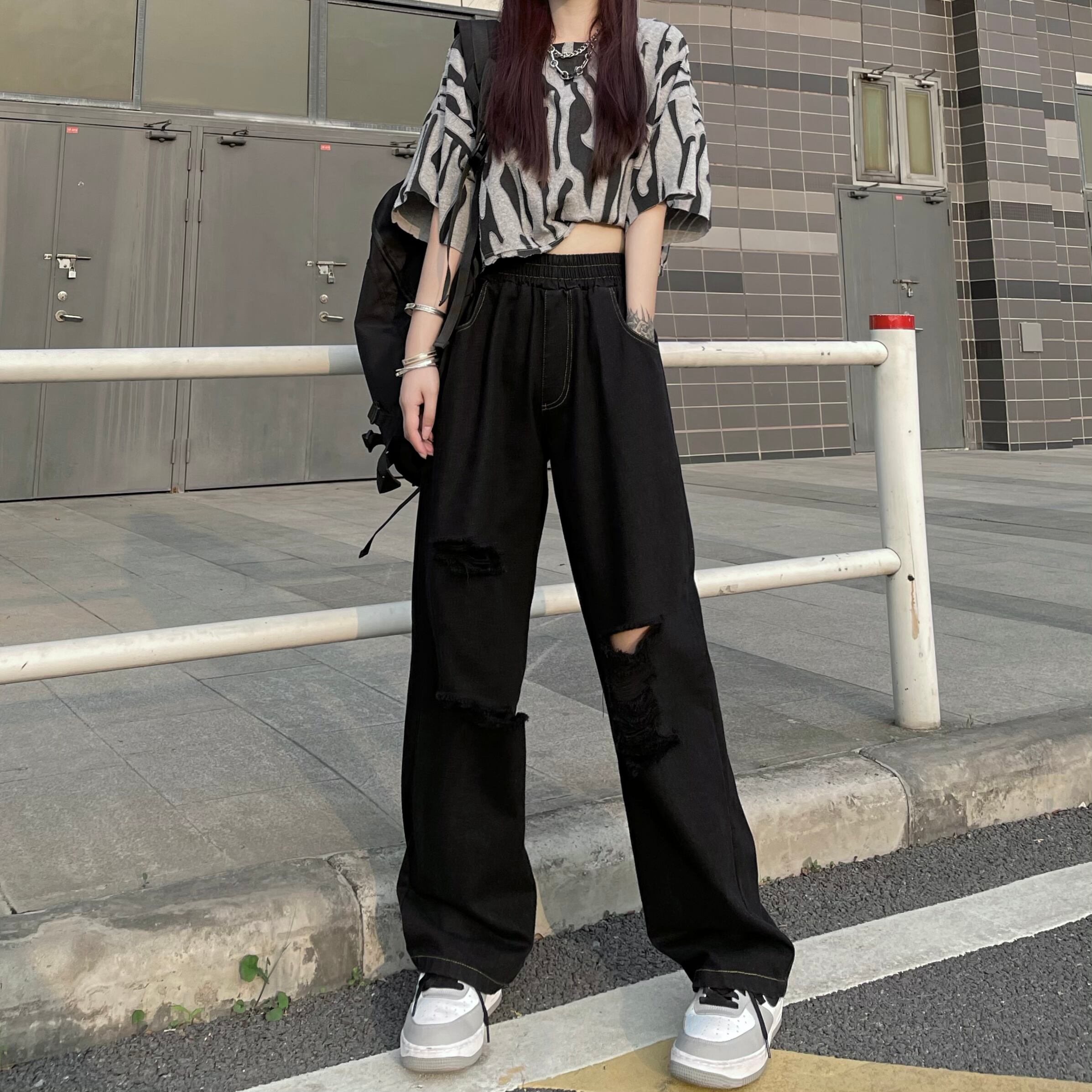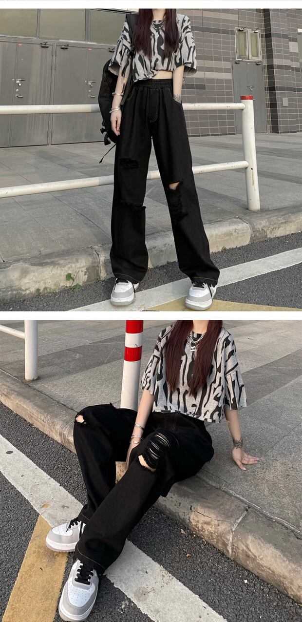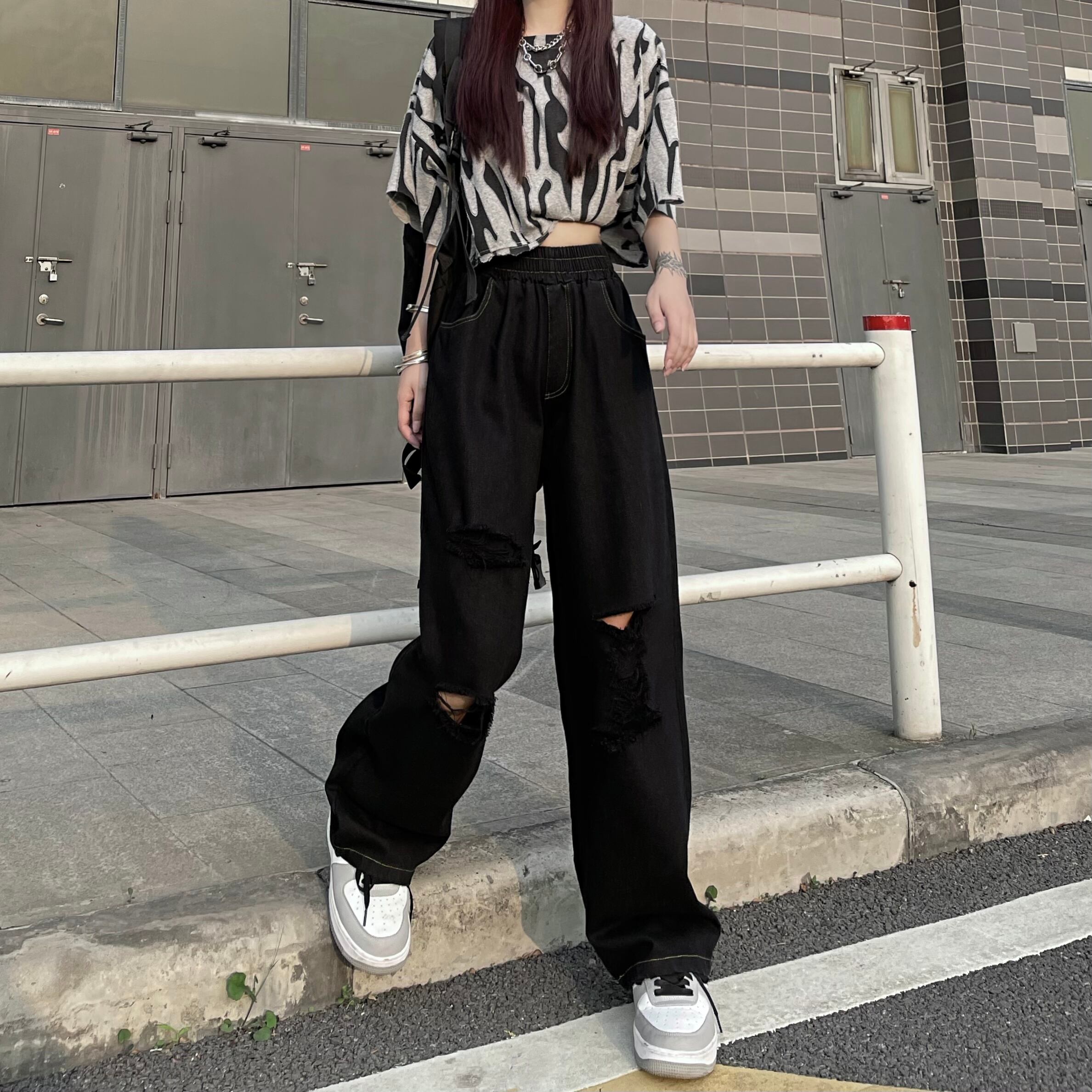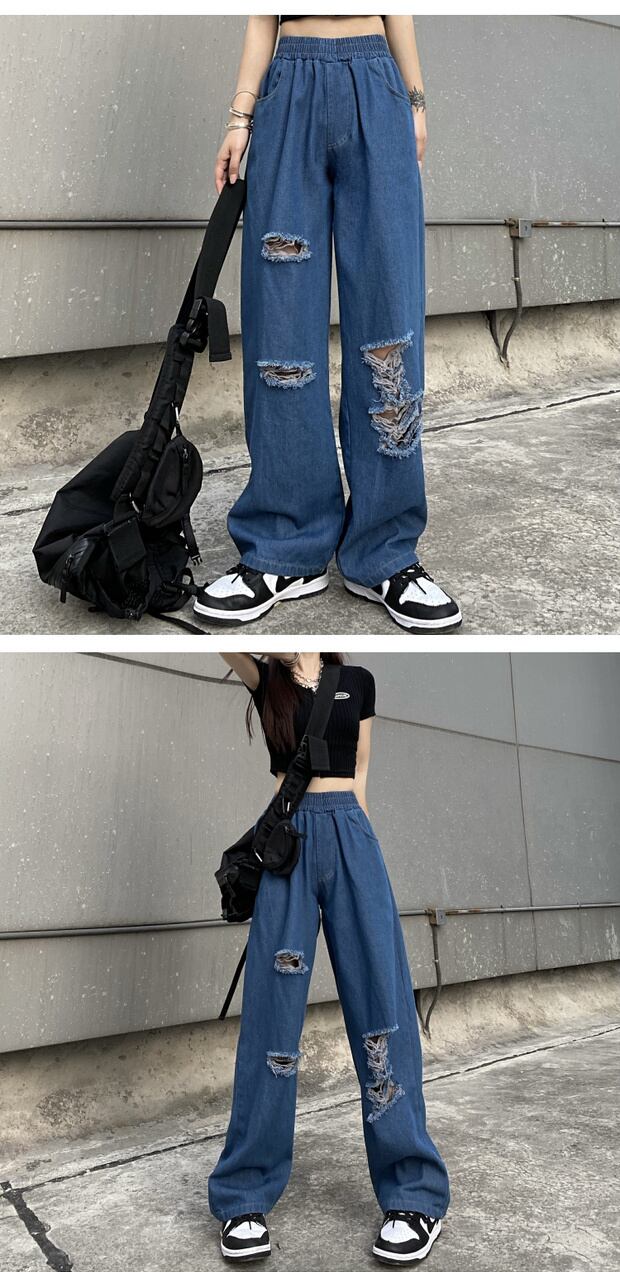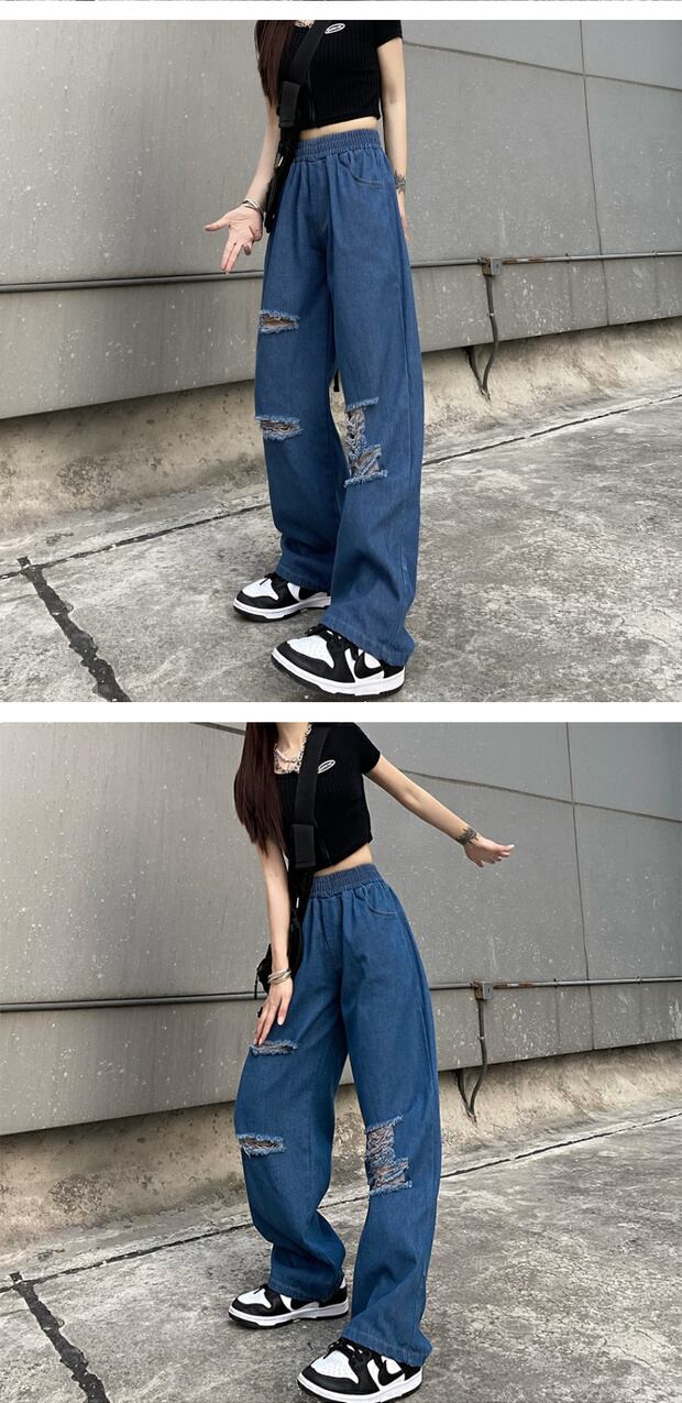 スプリングサマージーンズ ルーズハイウェストウェストレディースパンツ 春物 夏物 ケッペル12911940075