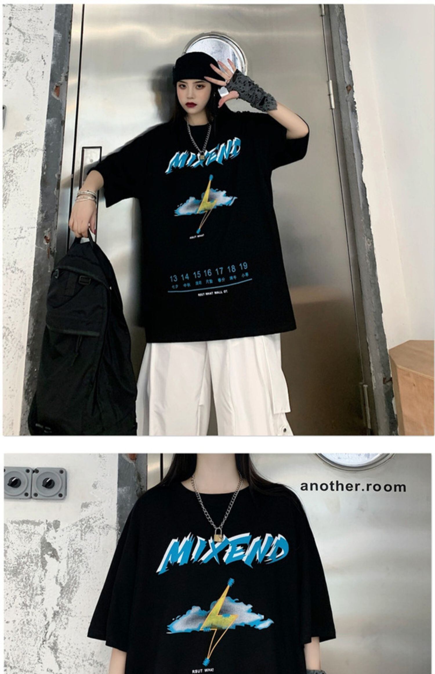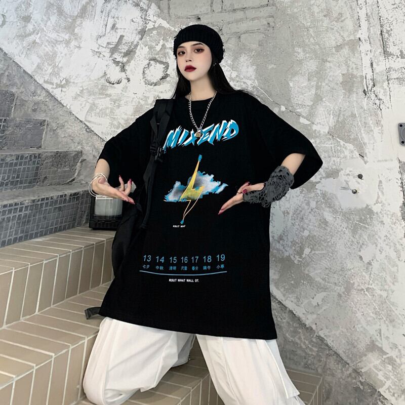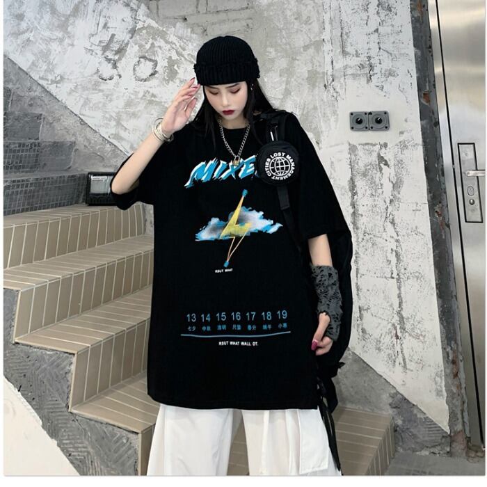 ダークサマーTシャツ ルーズ コットン 大きめサイズ 夏物 ケッペル65360287393