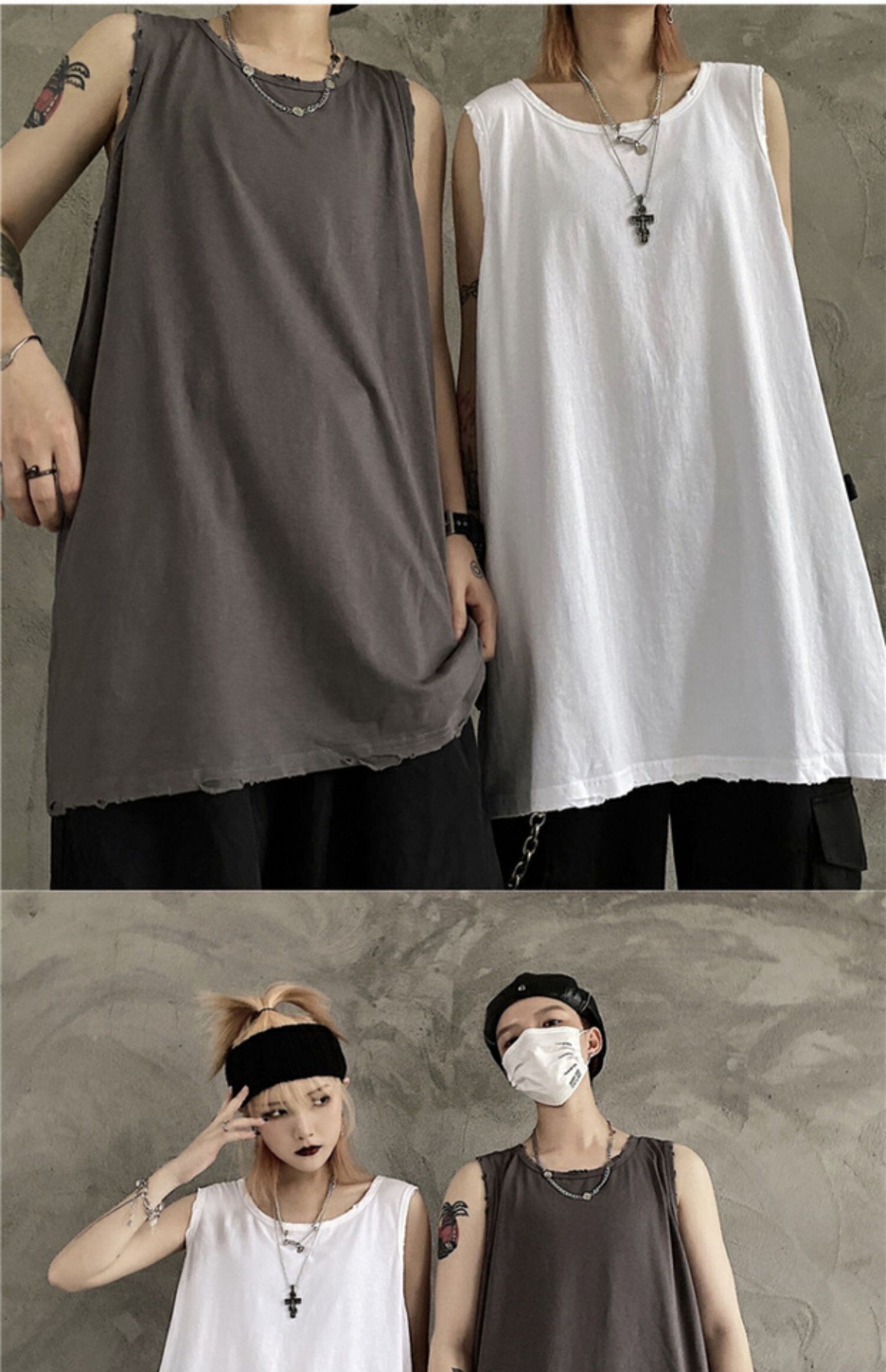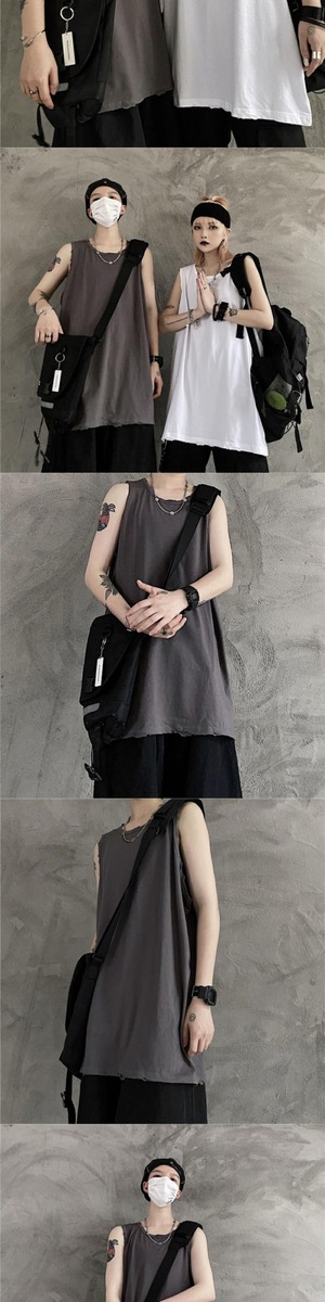 サマースタイルルーズホワイトノースリーブトップス ストリート かわいい 夏物 ケッペル85476599426