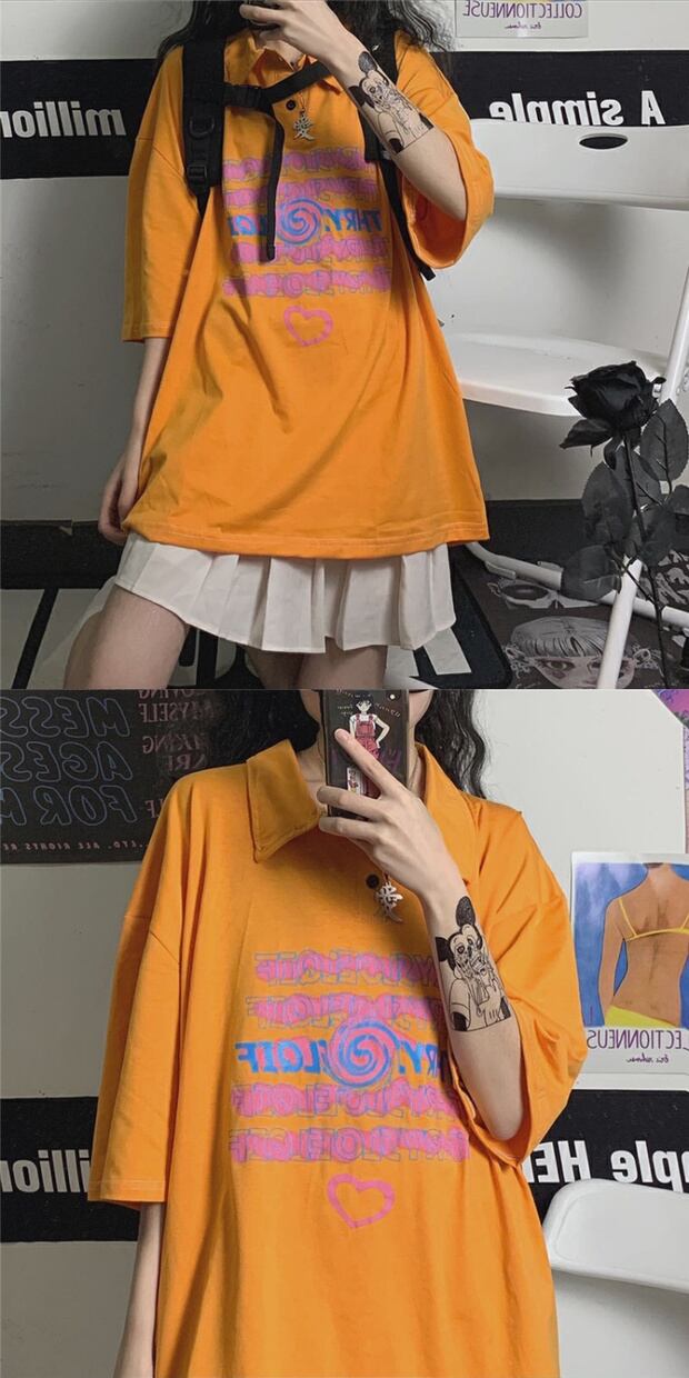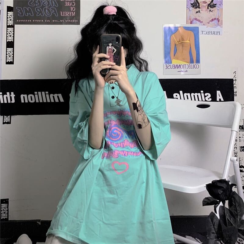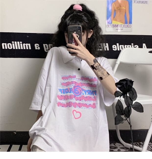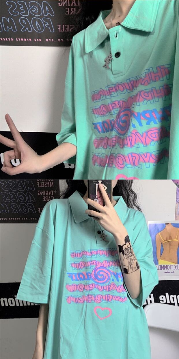 スタイルルーズTシャツ プリントカジュアルトップス ストリート 大きめサイズ かわいい ケッペル48096095533