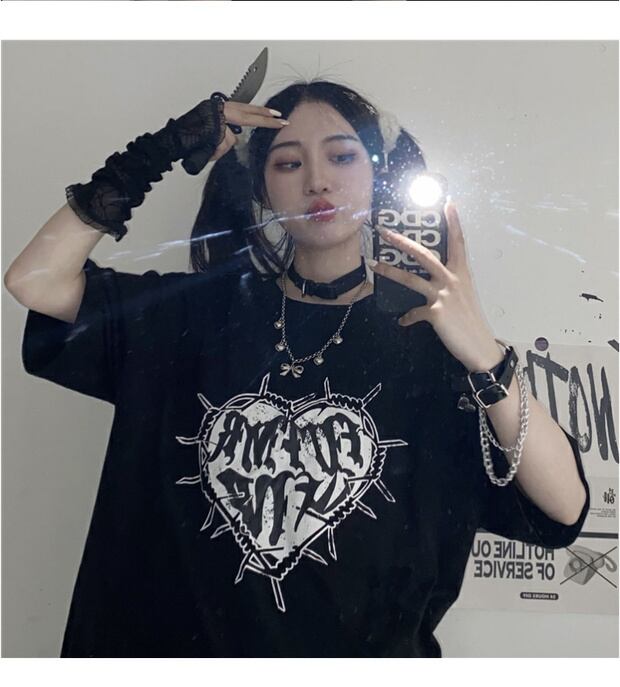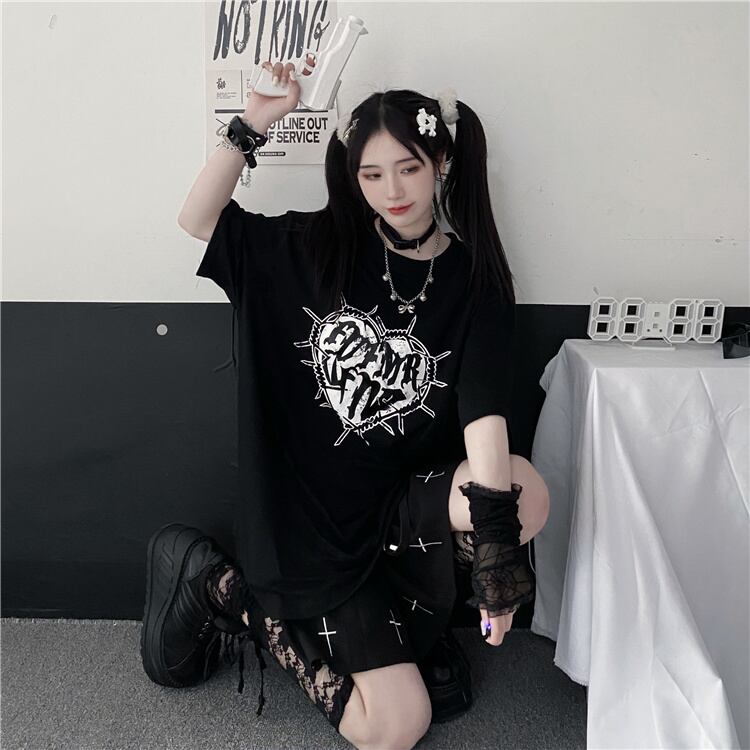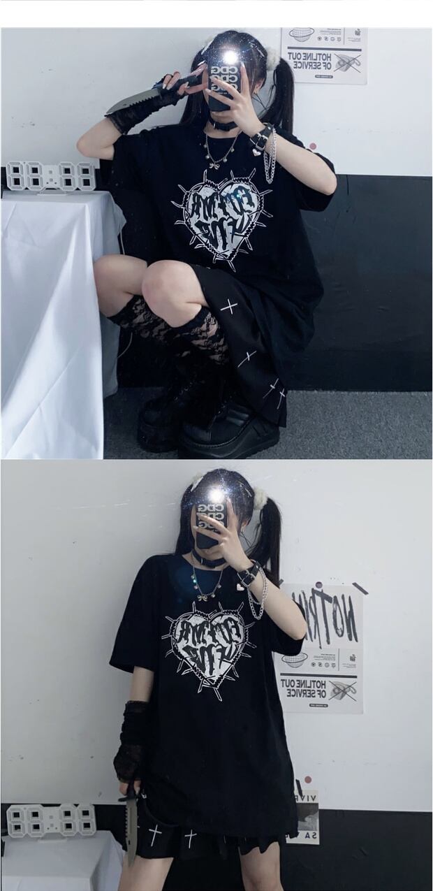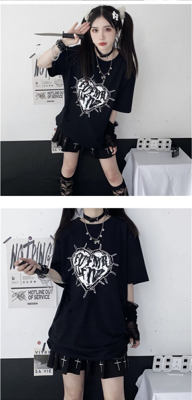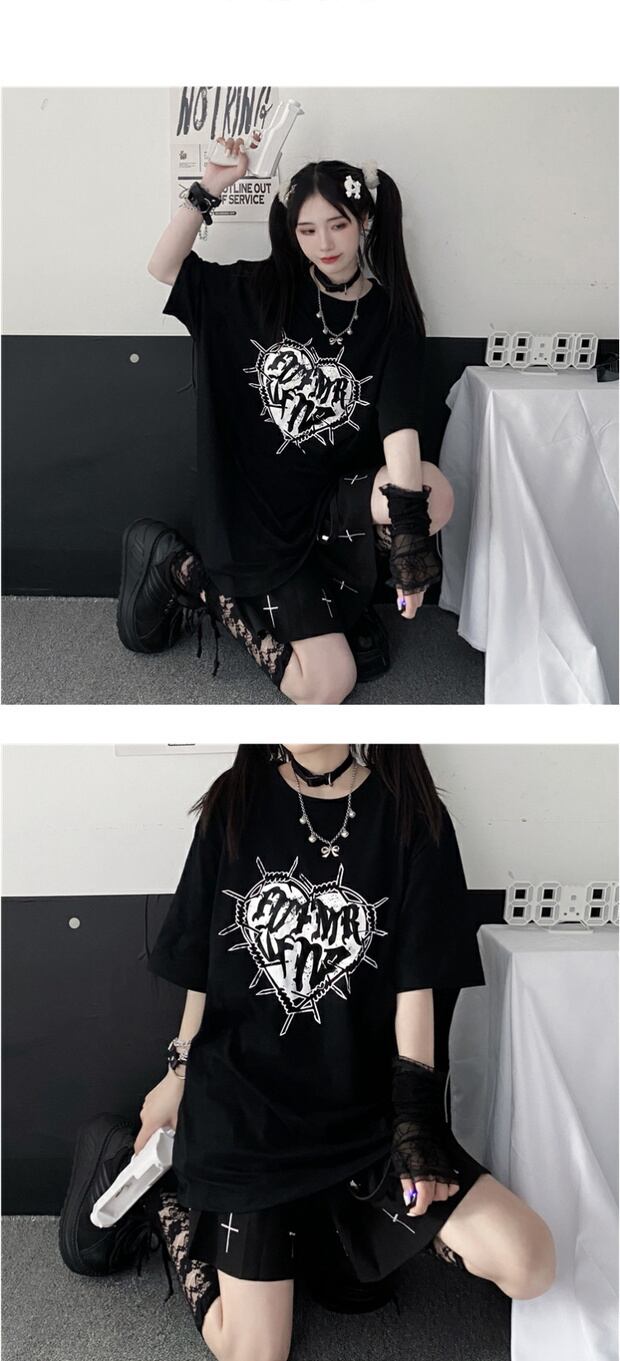 ダークプリントTシャツ カジュアルサマーレディーストップス コットン 夏物 ケッペル14018128516