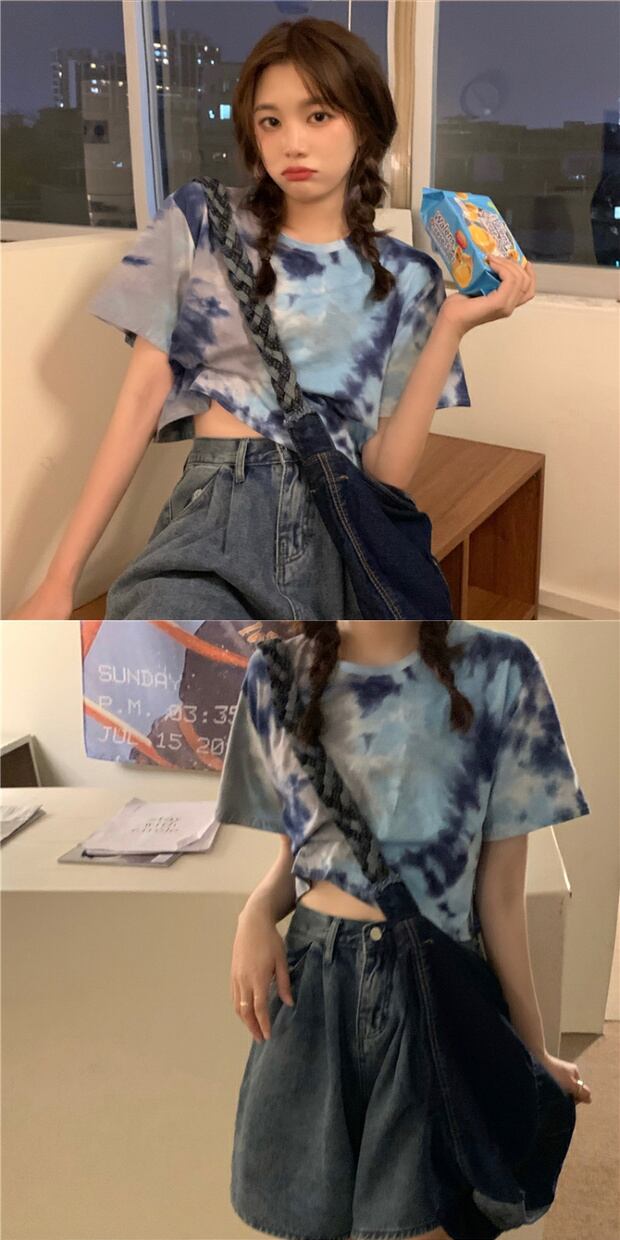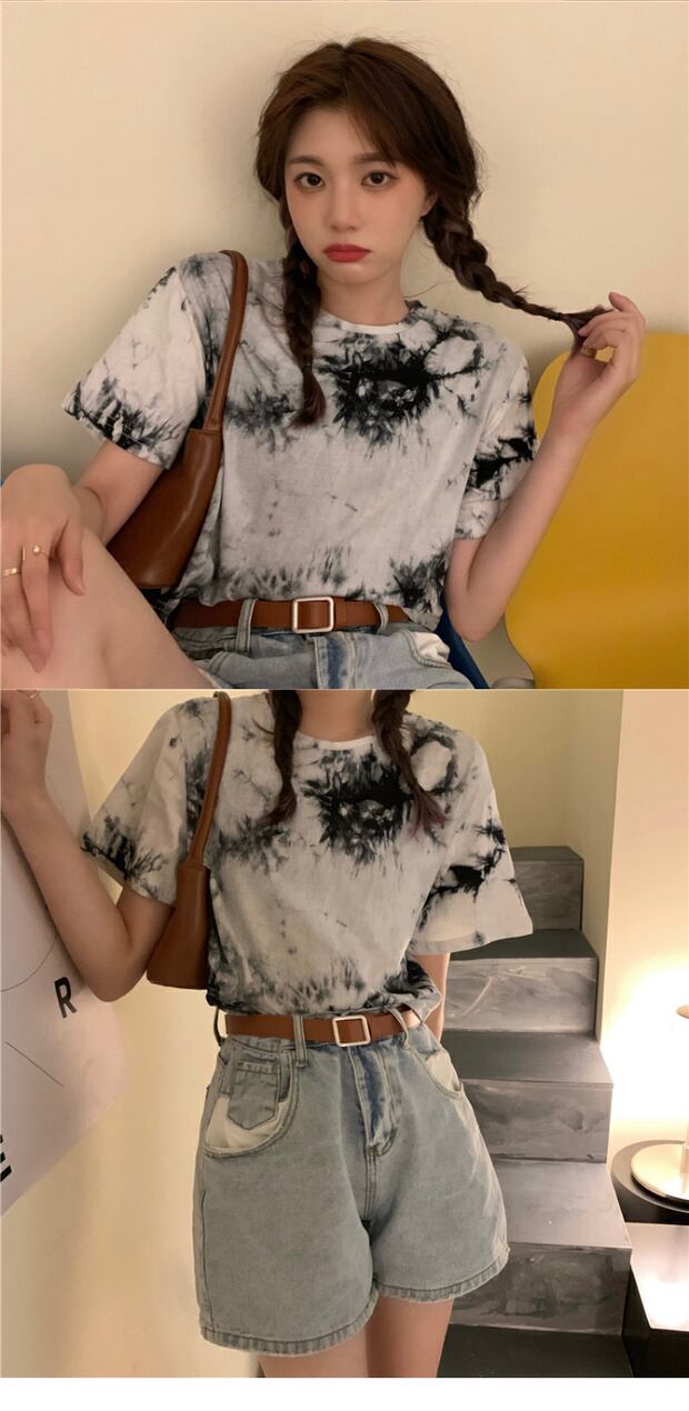 サマーショートTシャツ ルーズラウンドネック 夏物 Oネック ケッペル46035156935