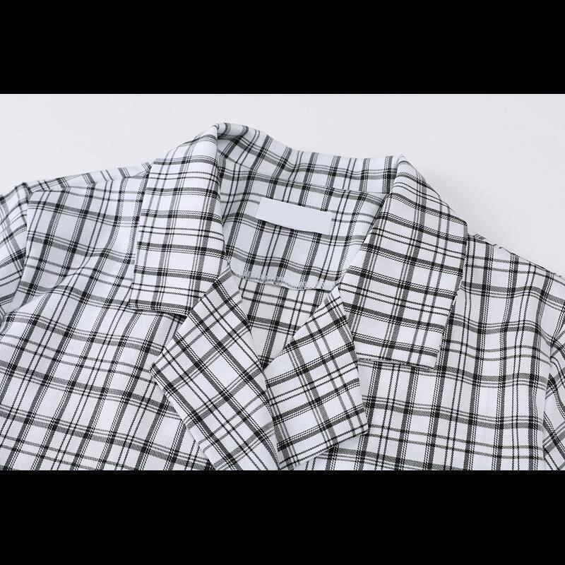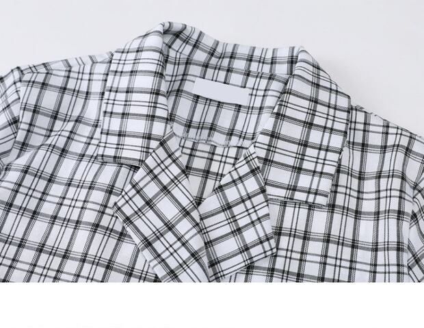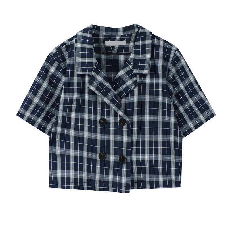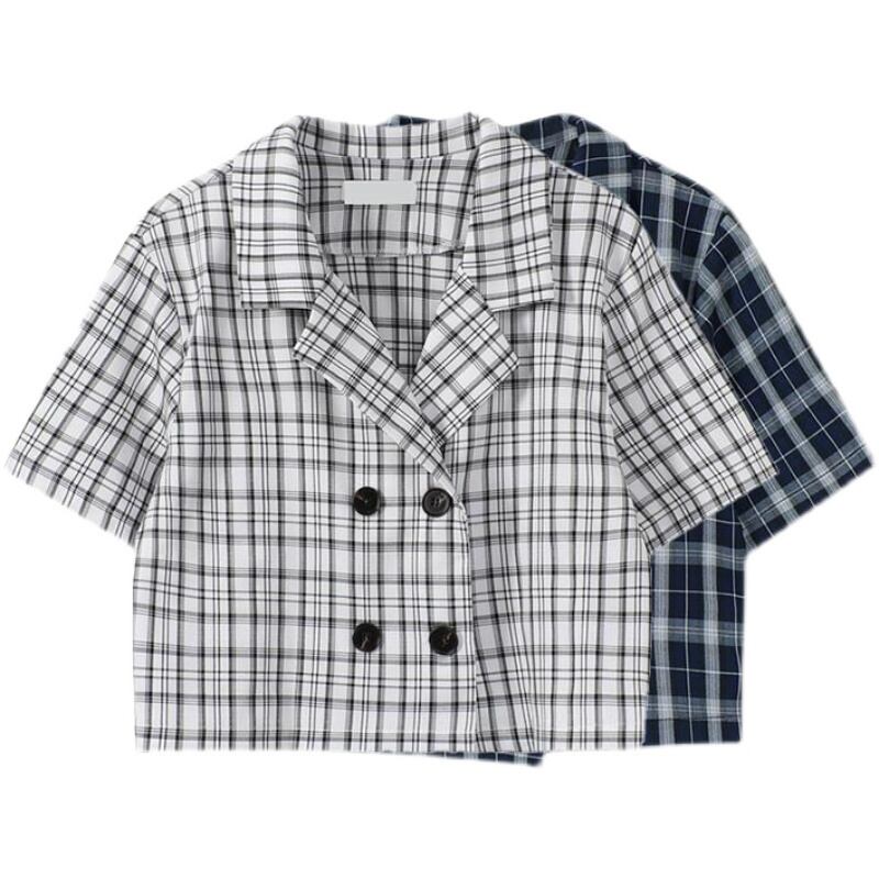 サマースタンダード格子柄ショートシャツ スリムカーディガン レトロ 夏物 ケッペル77180595683