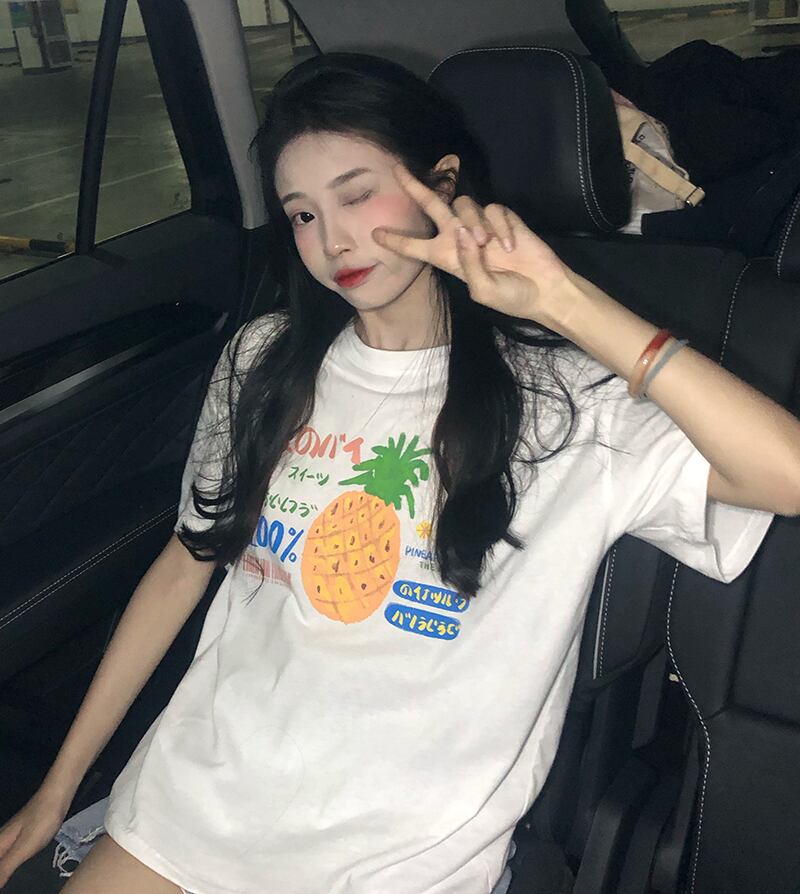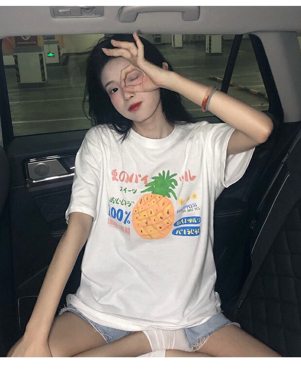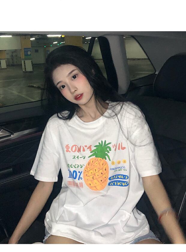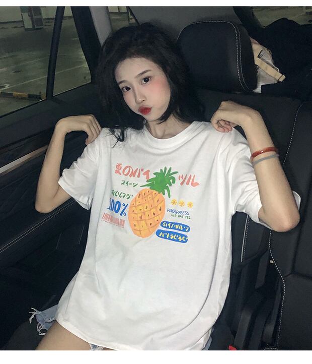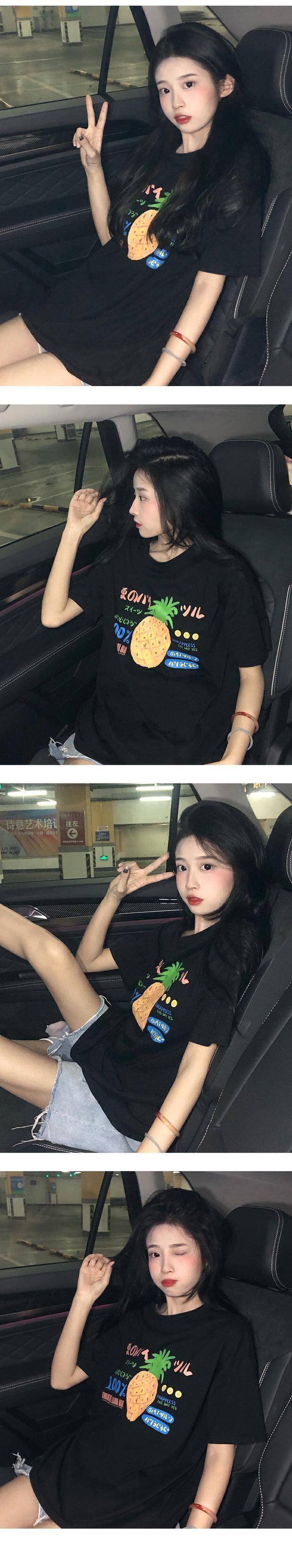 色:ホワイトパイナップルプリントTシャツ,ブラックパイナップルプリントTシャツ