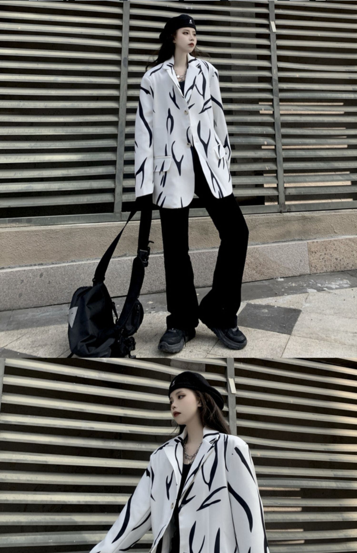 ダークパターンカジュアルジャケット ルーズ ケッペル83219480690