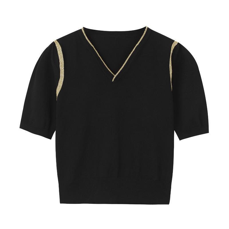 サマーVネックセーター カジュアルプルオーバー Tシャツ トップス 夏物 ケッペル6308793818