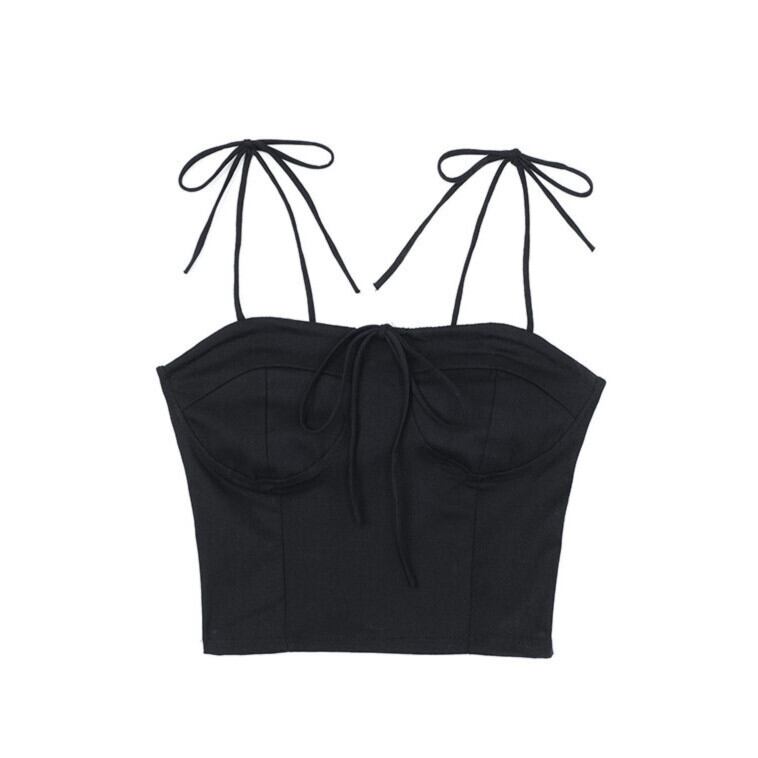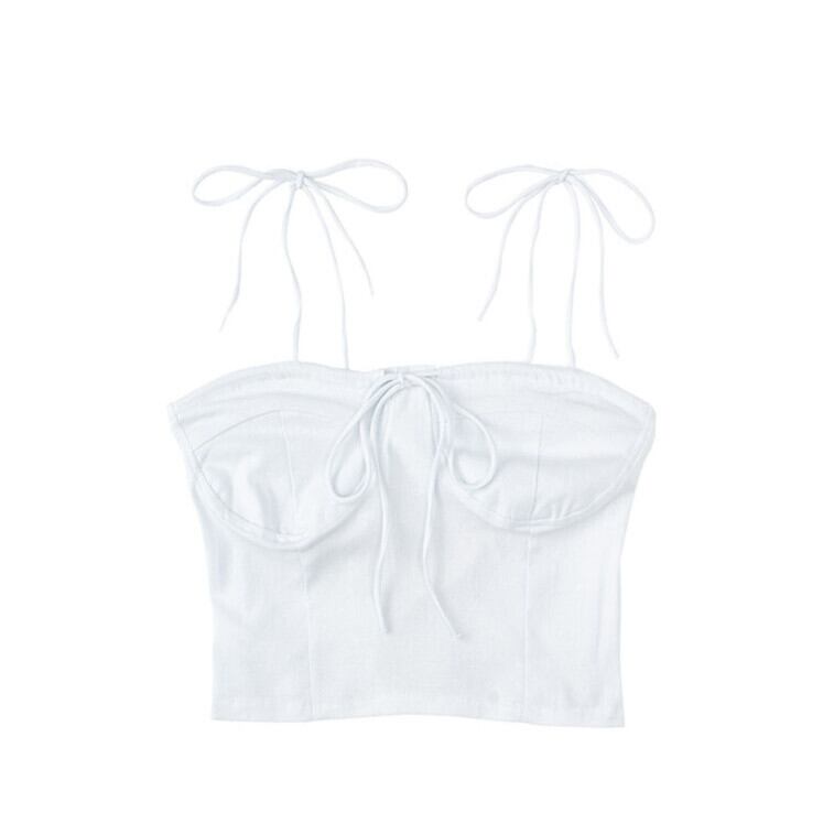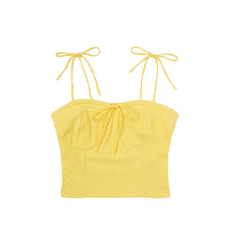 サマースタンダードカラーストレッチスリム薄手ショート リボン レトロ エラスティック 伸縮 夏物 ピュア ケッペル2789370968