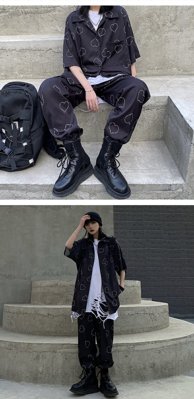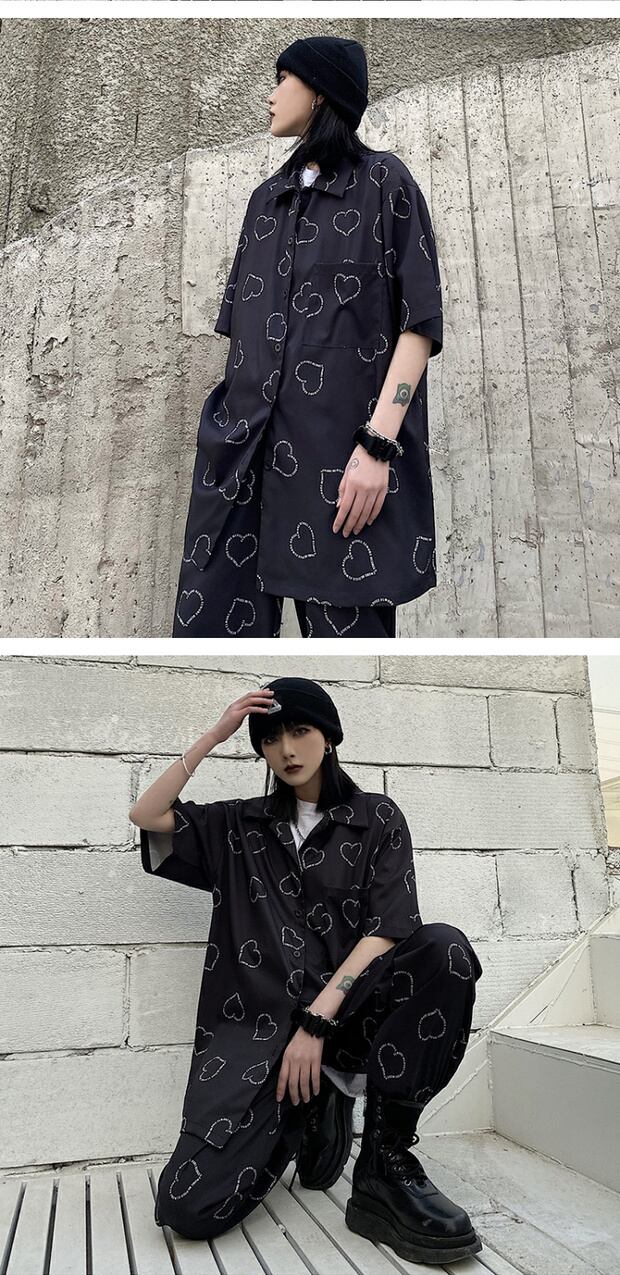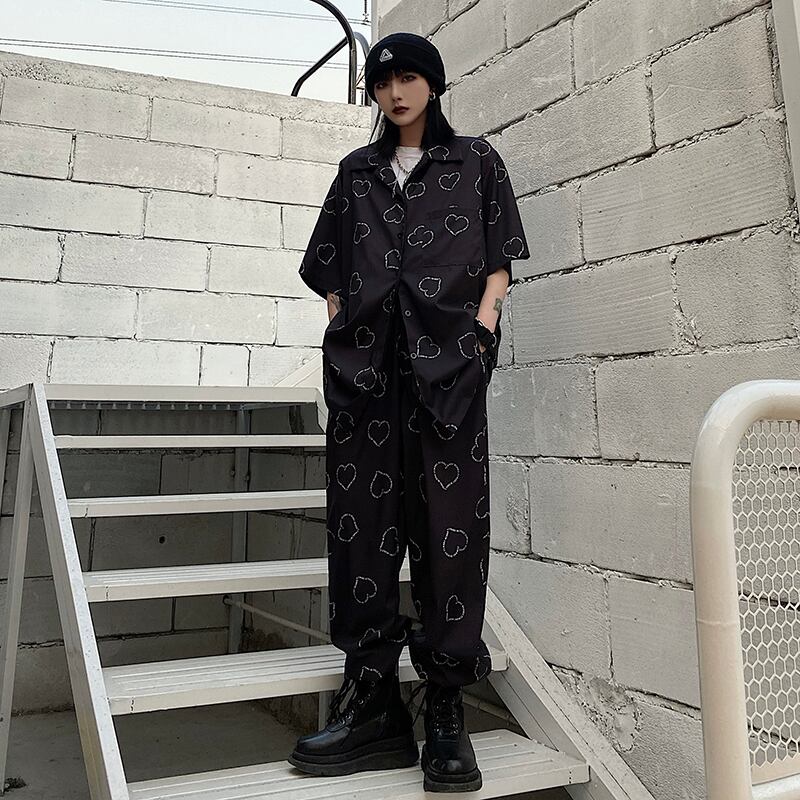 スタイルダークプリント柄カジュアルレディースルーズシャツ カーディガンTシャツ ワイドレッグ かわいい ワイドパンツ ケッペル69641852151