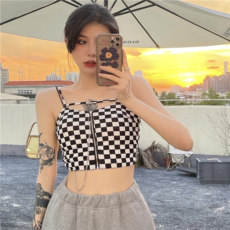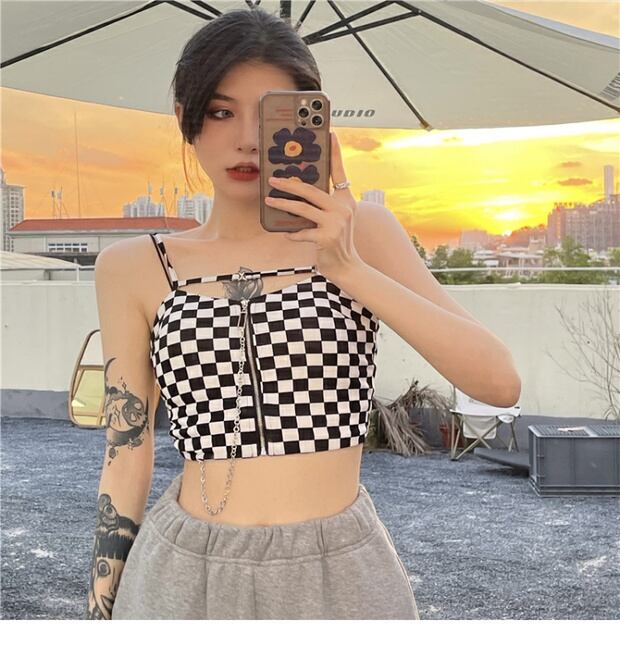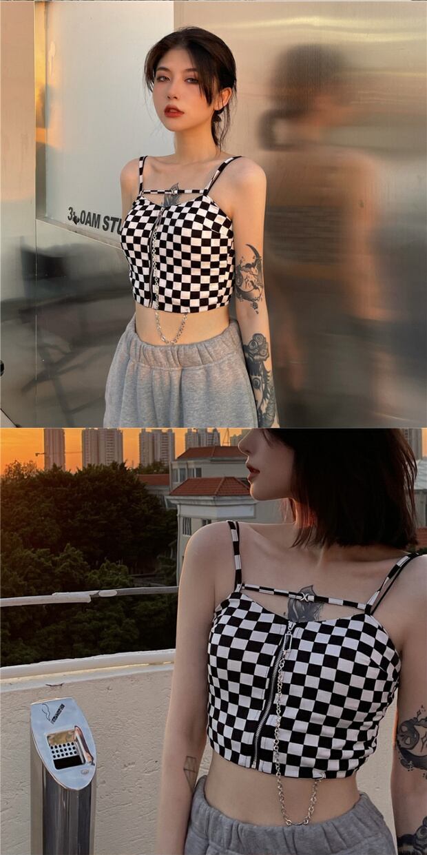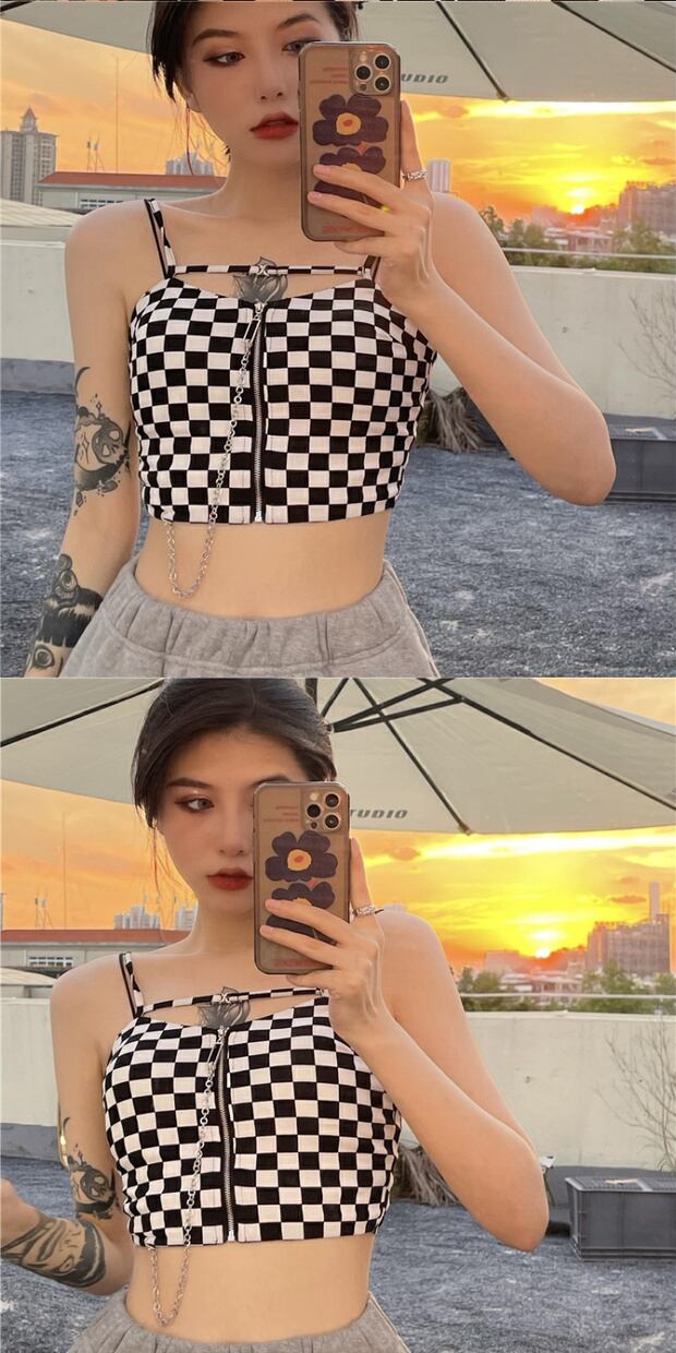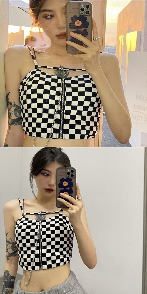 サマーブラックホワイトジッパートップス ショート 夏物 ケッペル44251889181