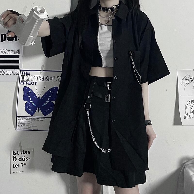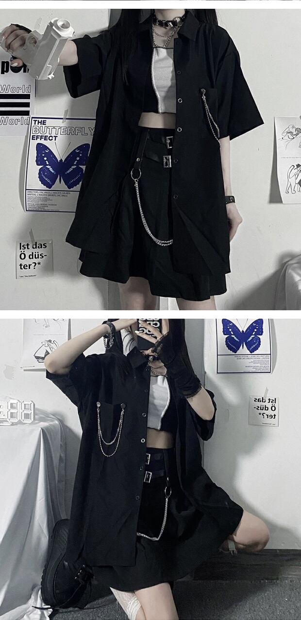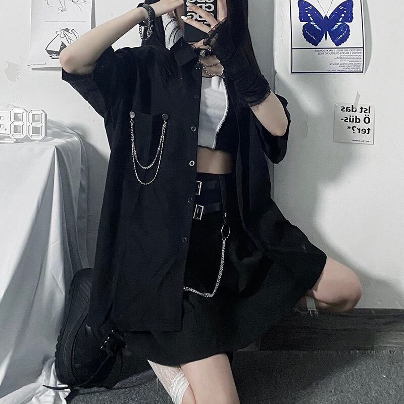スタイルサマールーズシャツ ダークポケットチェーン カーディガンレディース かわいい 夏物 ケッペル65452610735
