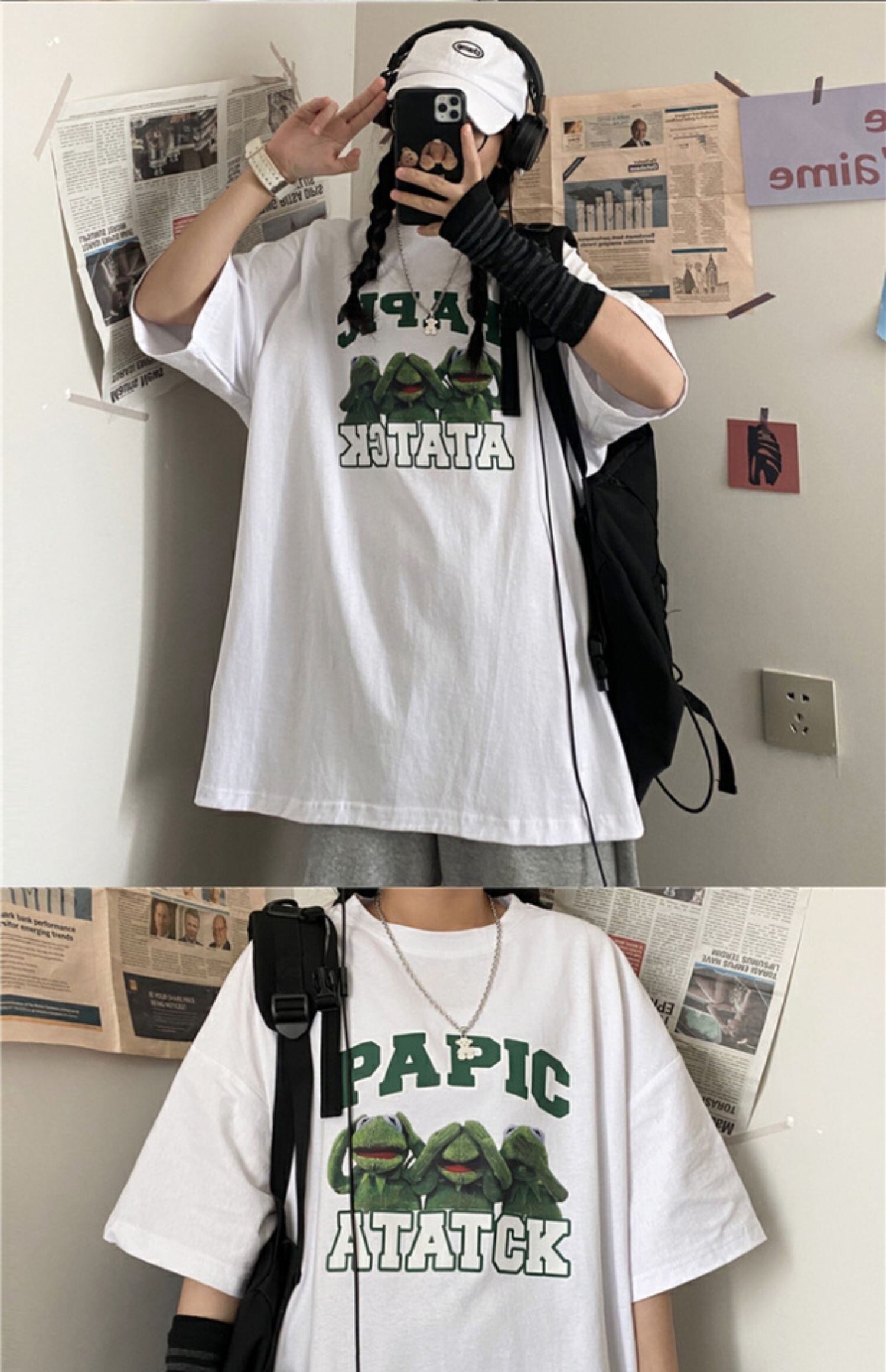 ルーズスプリングサマースタイルカジュアルTシャツ レディースラウンドネックトップス コットン 大きめサイズ かわいい 春物 夏物 Oネック ピュア ケッペル43488770638