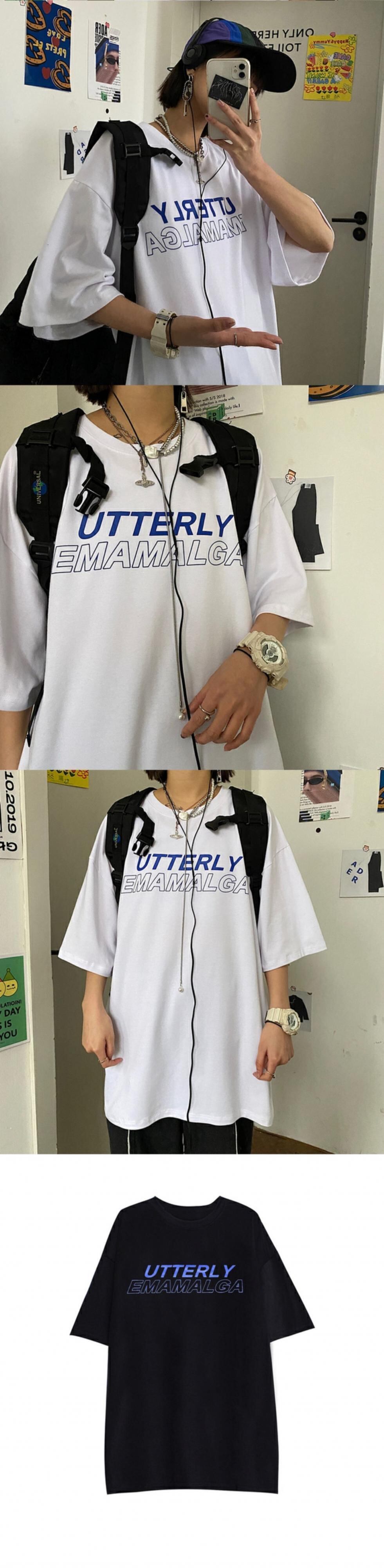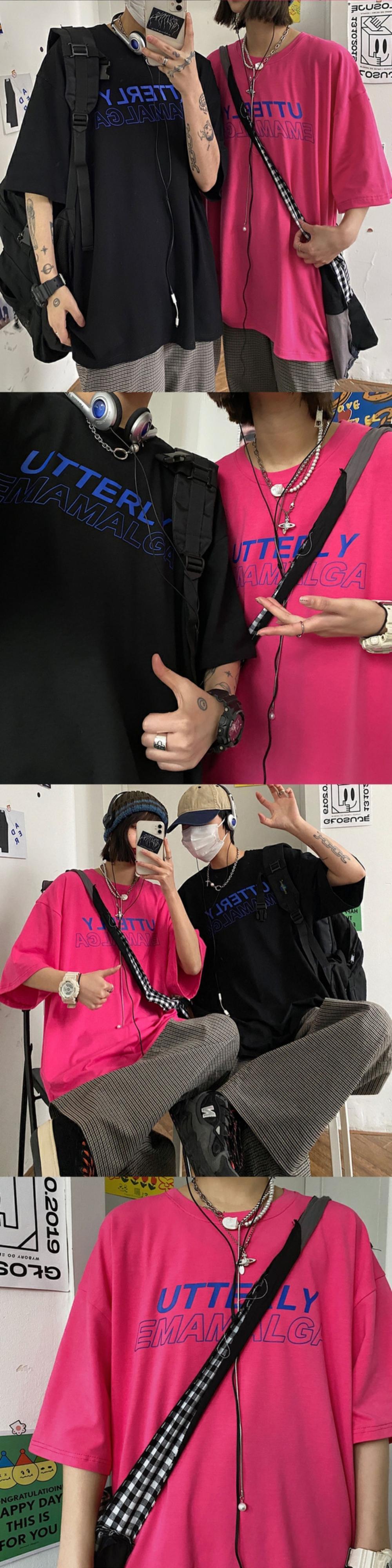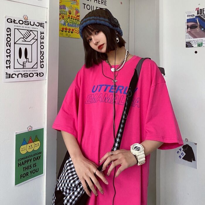 プリントルーズソリッド カラーラウンドネックTシャツ カジュアルトップス 大きめサイズ かわいい Oネック ソリッドカラー ケッペル90287134061