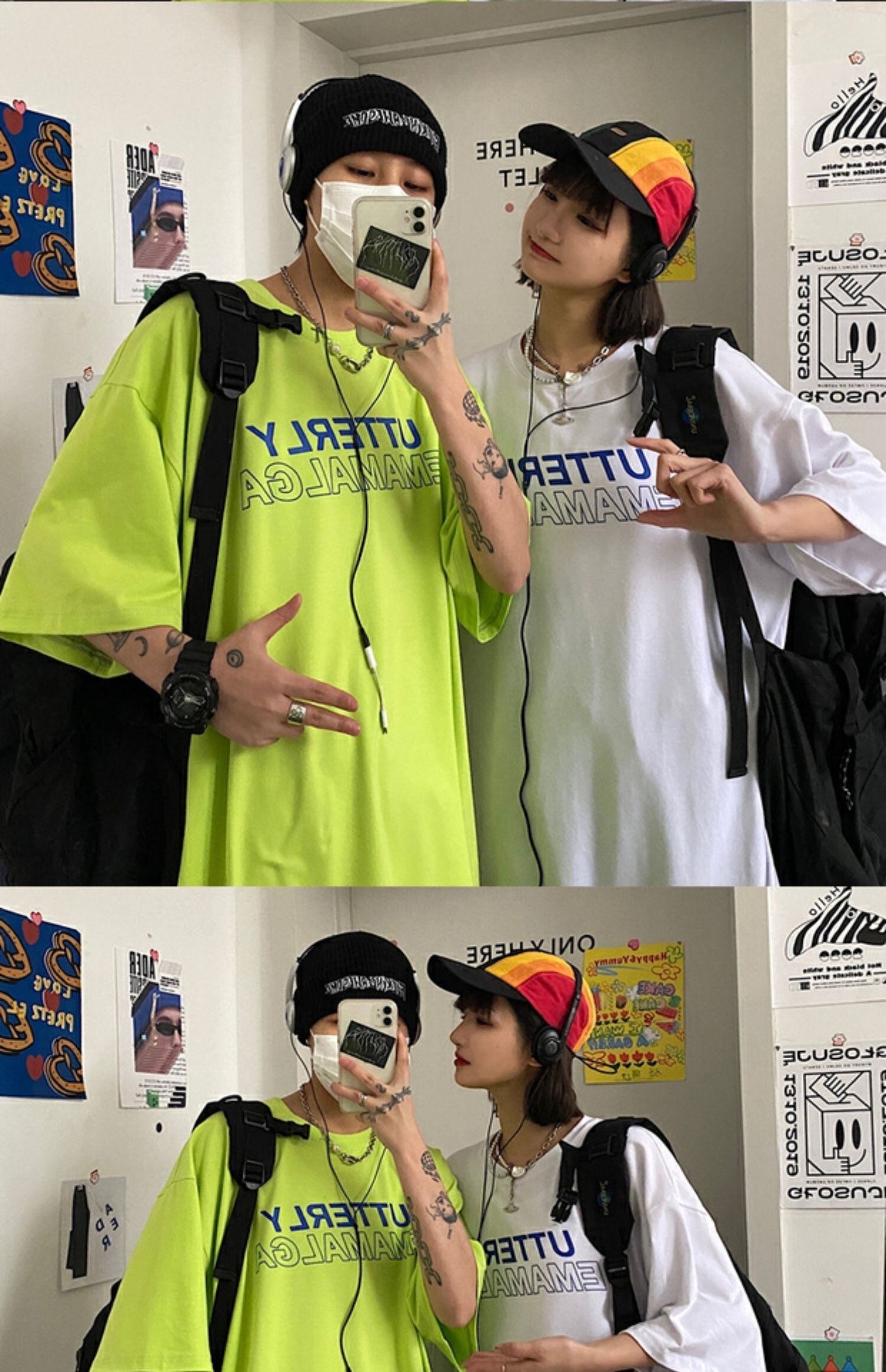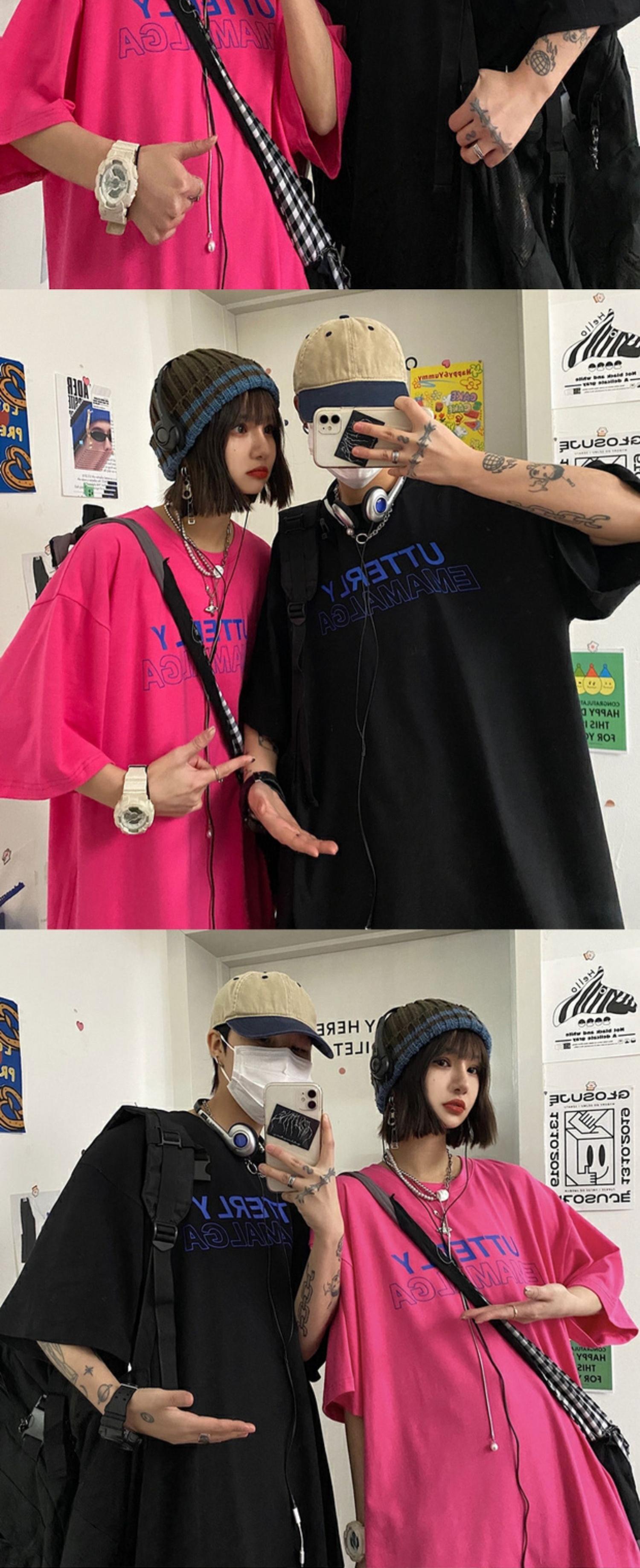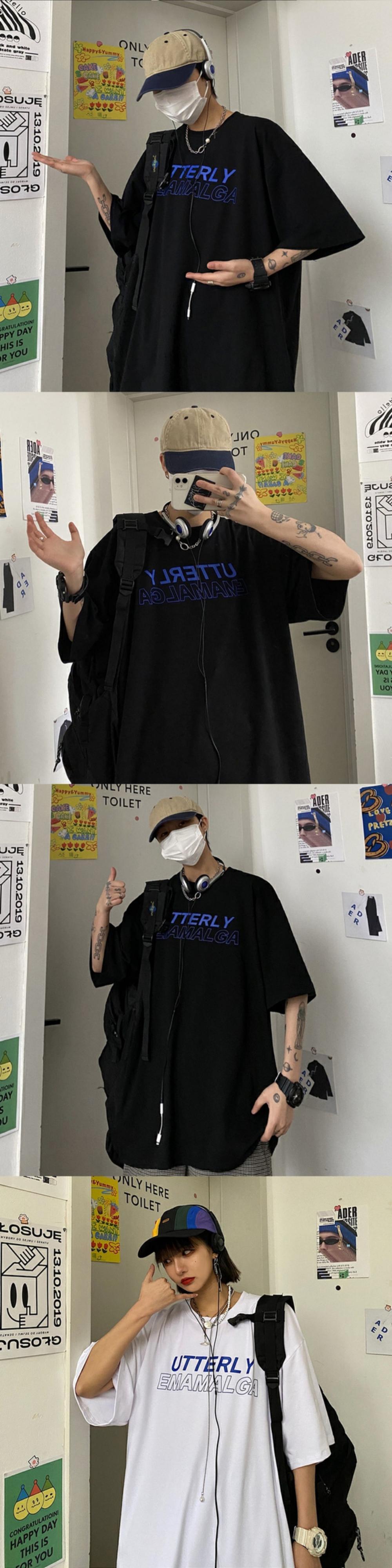 プリントルーズソリッド カラーラウンドネックTシャツ カジュアルトップス 大きめサイズ かわいい Oネック ソリッドカラー ケッペル90287134061