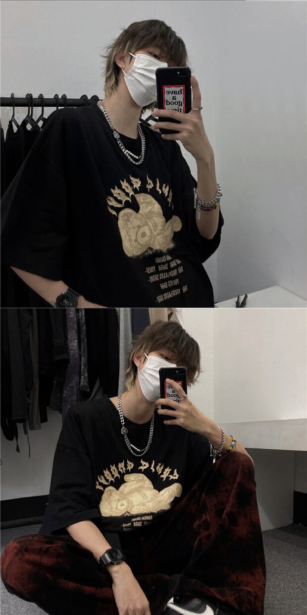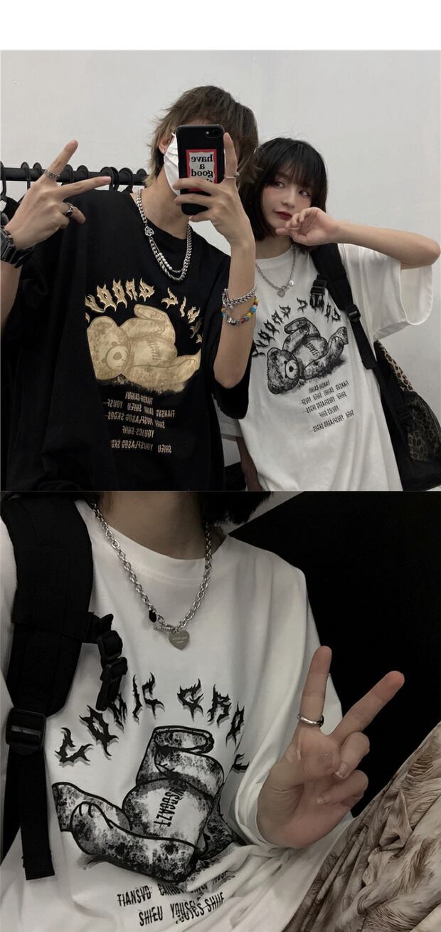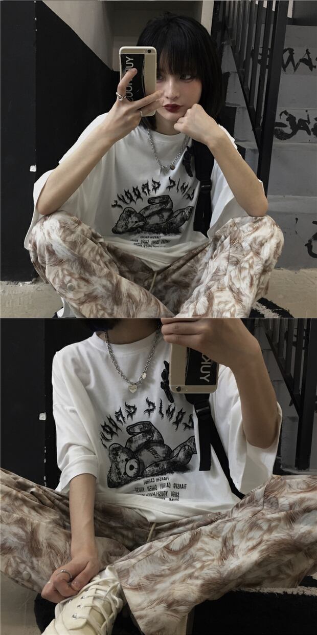 サマールーズスリーブシャツ スタイルカジュアルTシャツ ダークプリント柄ラウンドネック半袖 ハーフスリーブ かわいい 夏物 Oネック ケッペル81295011609