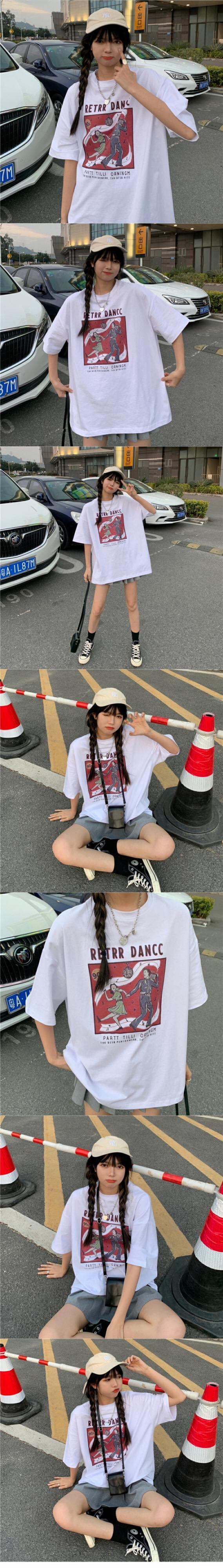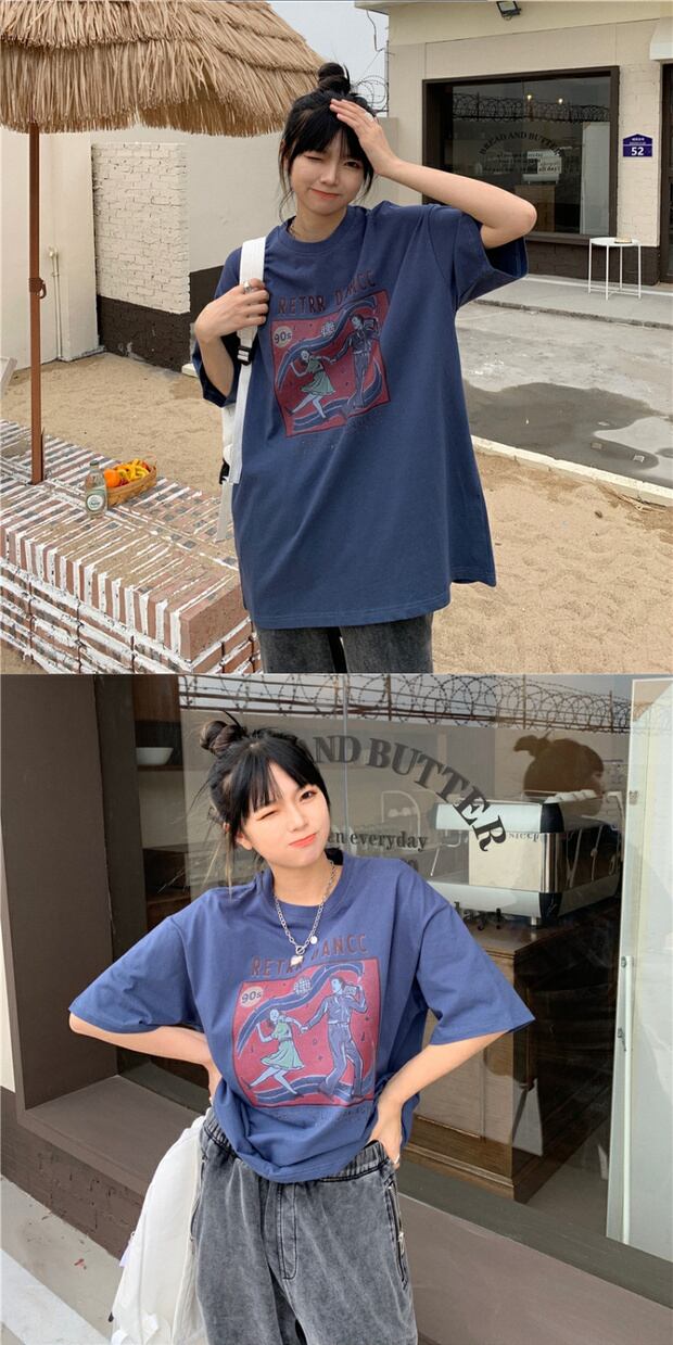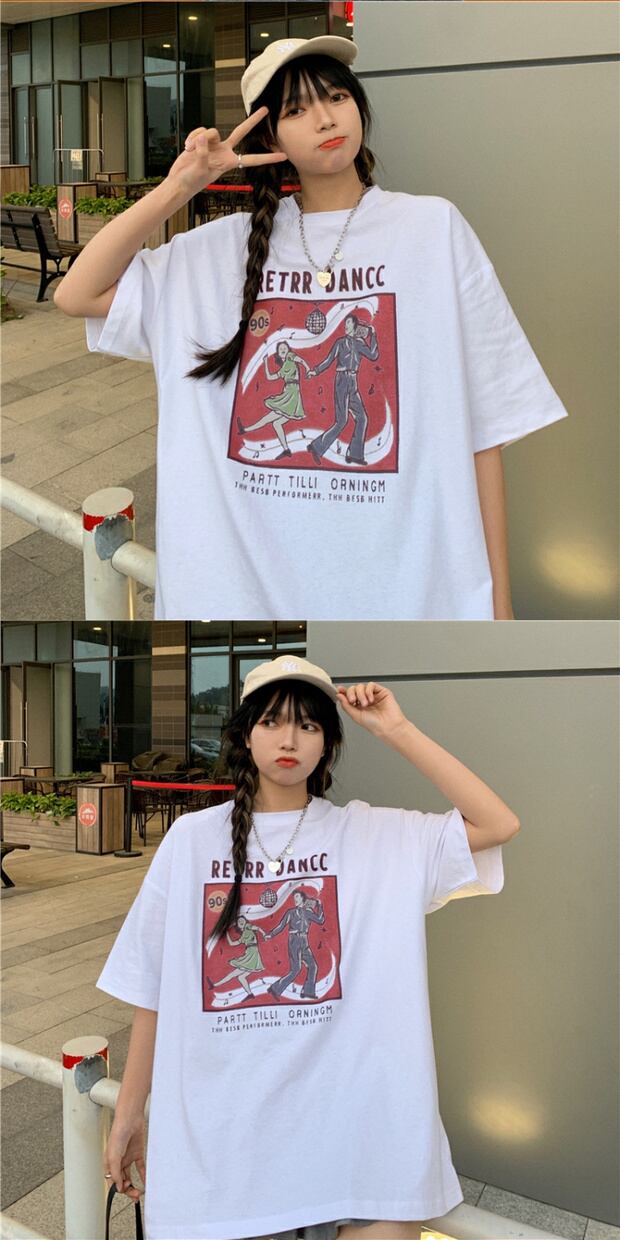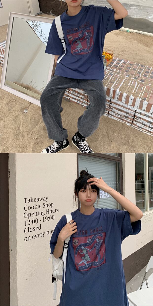 サマールーズプリントロングラウンドネックTシャツ コットン 夏物 Oネック ケッペル92089588476