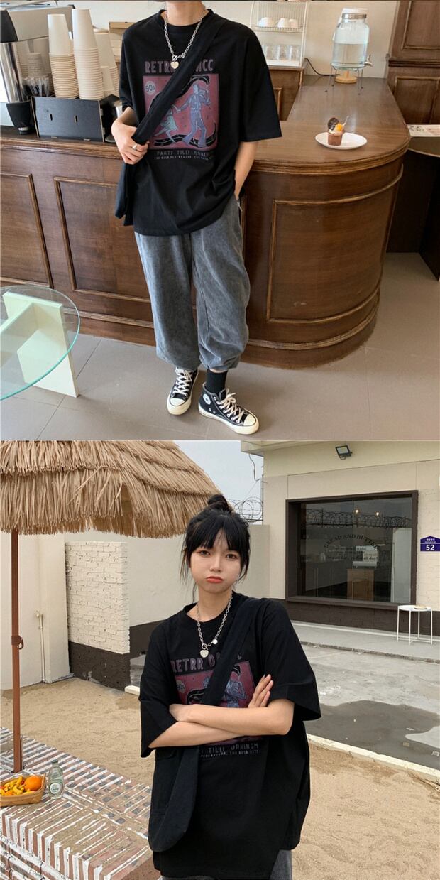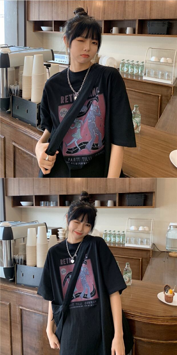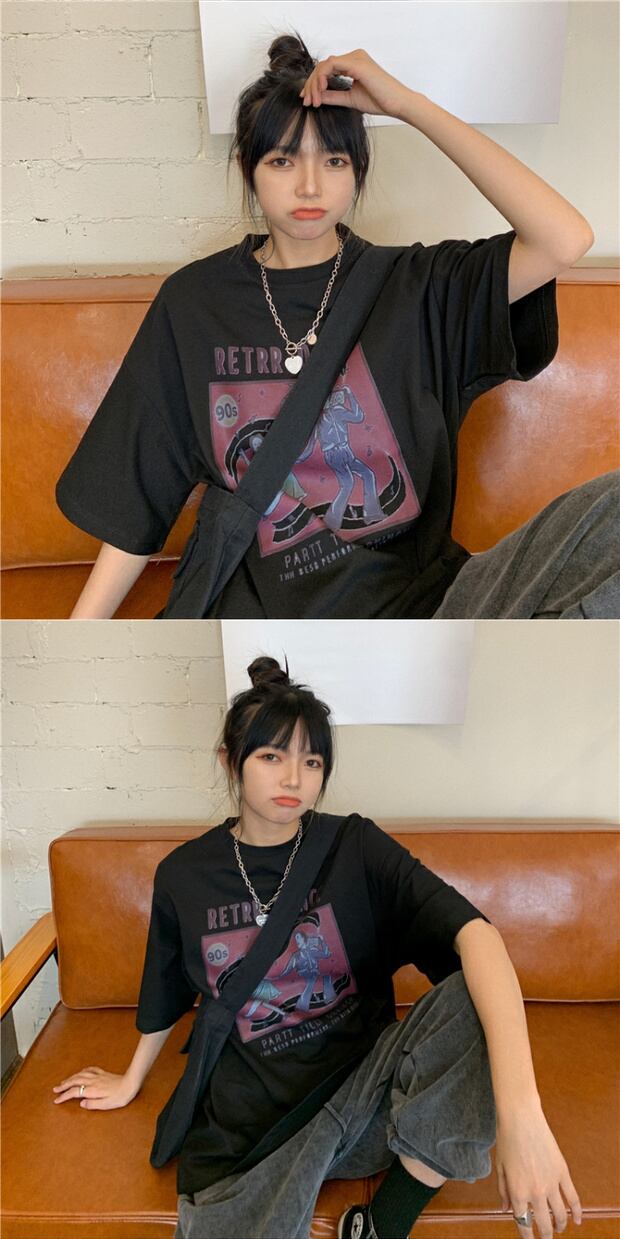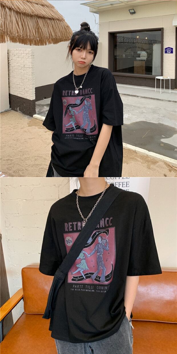 サマールーズプリントロングラウンドネックTシャツ コットン 夏物 Oネック ケッペル92089588476