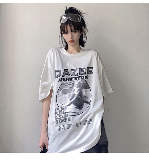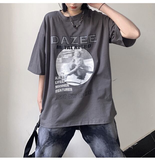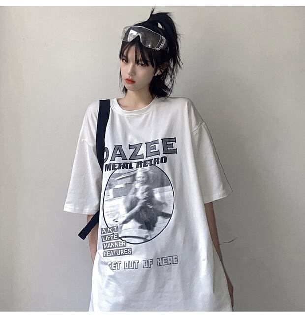 ルーズカジュアルサマーTシャツ プリント柄トップス ラウンドネック かわいい 夏物 Oネック ケッペル91437378718