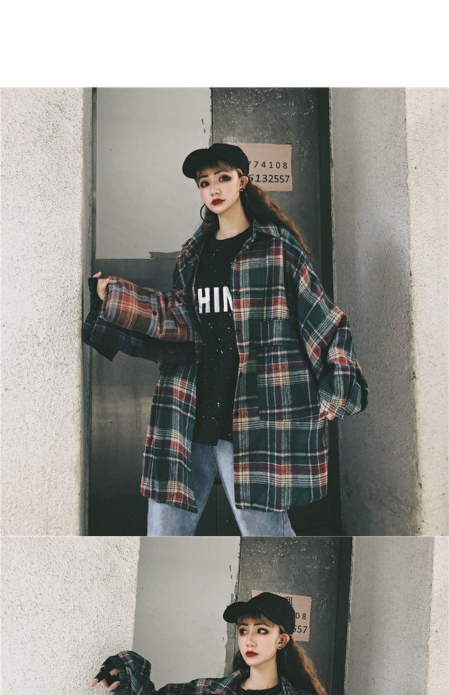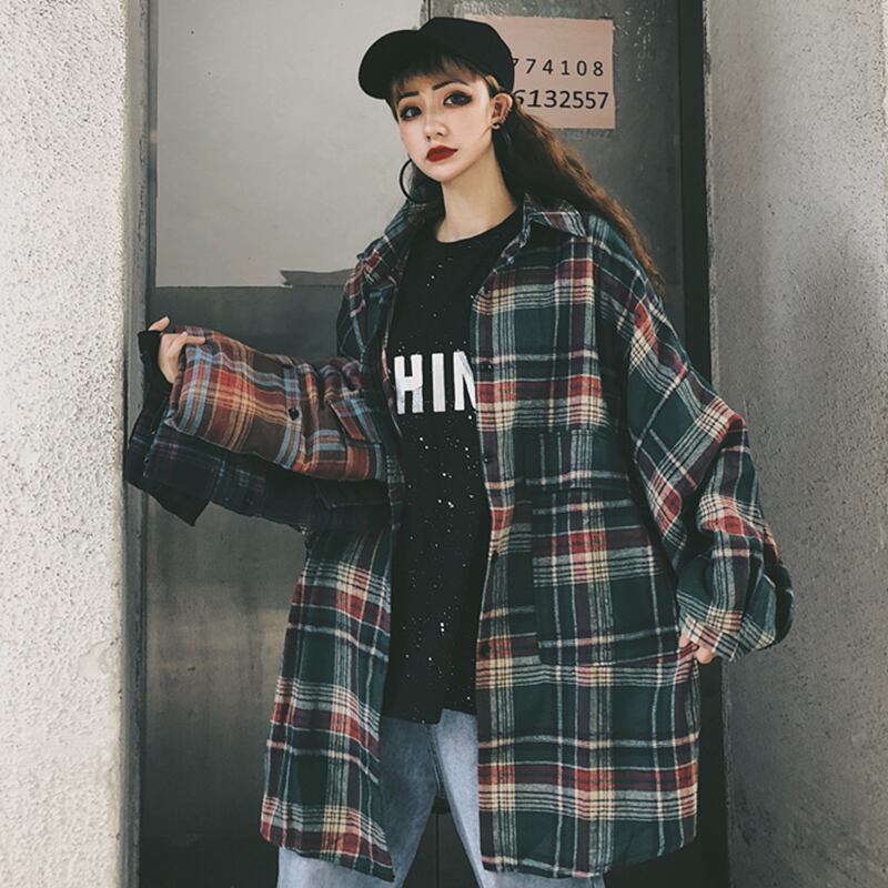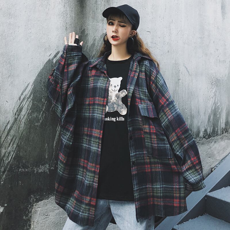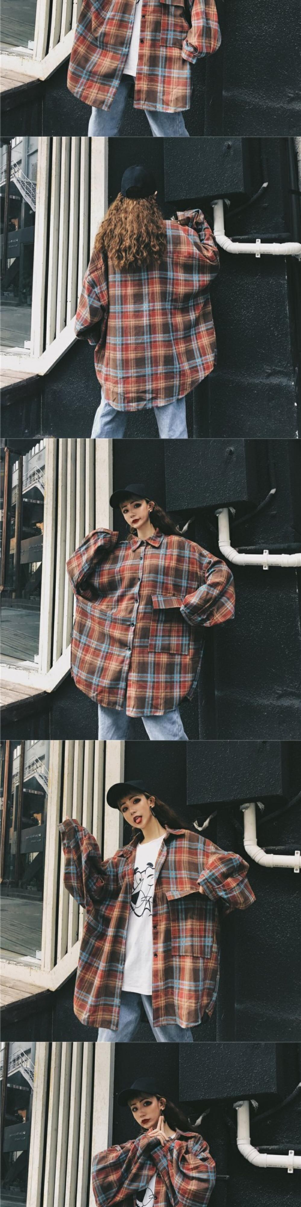 格子柄シャツ スタンダードオータムルーズカジュアルジャケット ロング レトロ 秋物 ケッペル29652039742