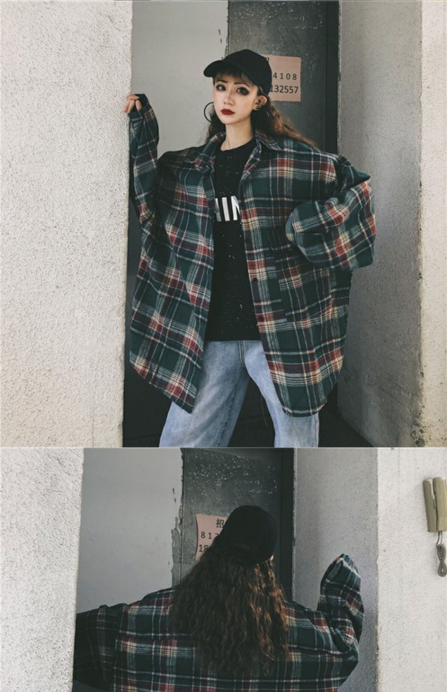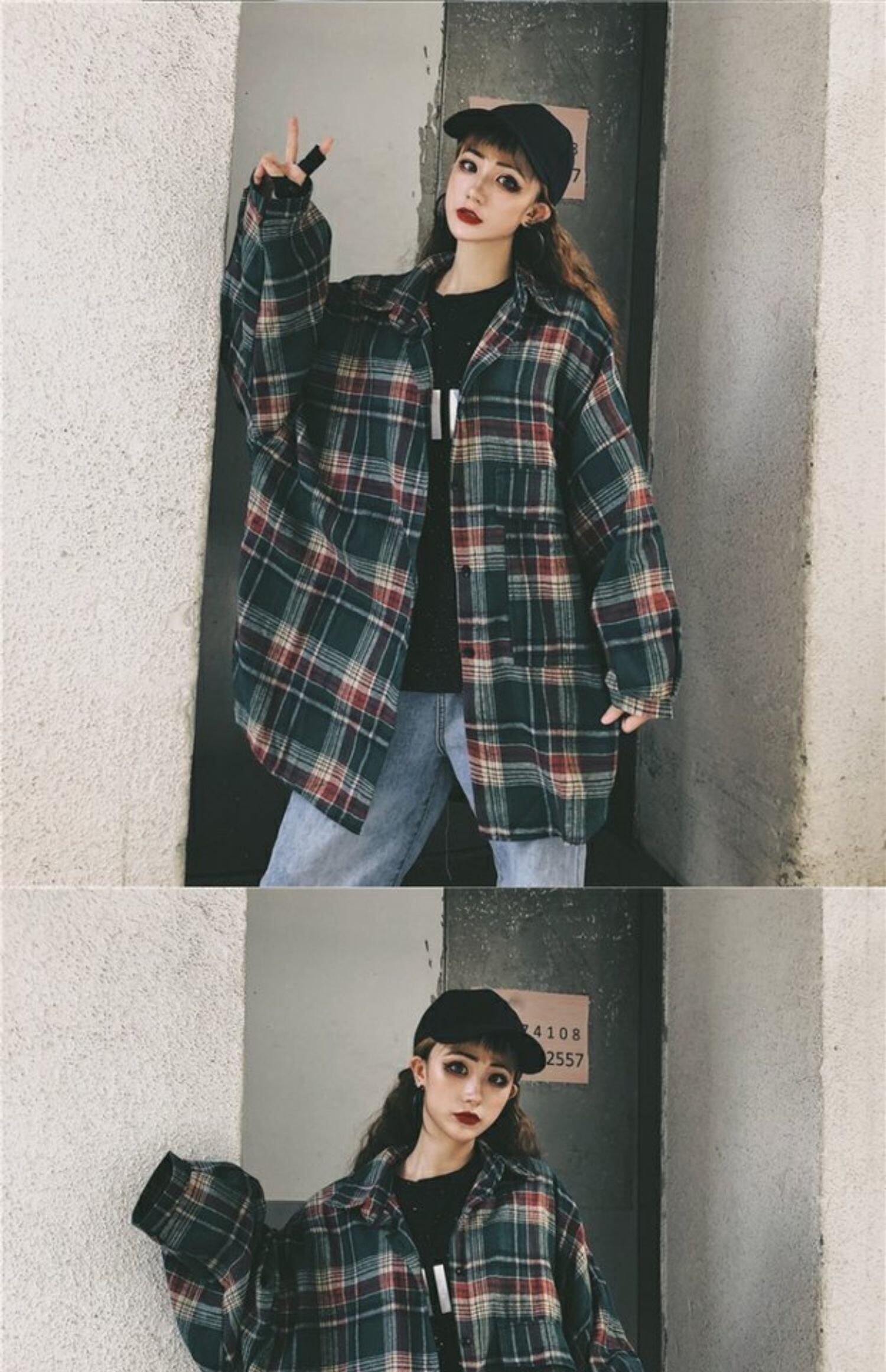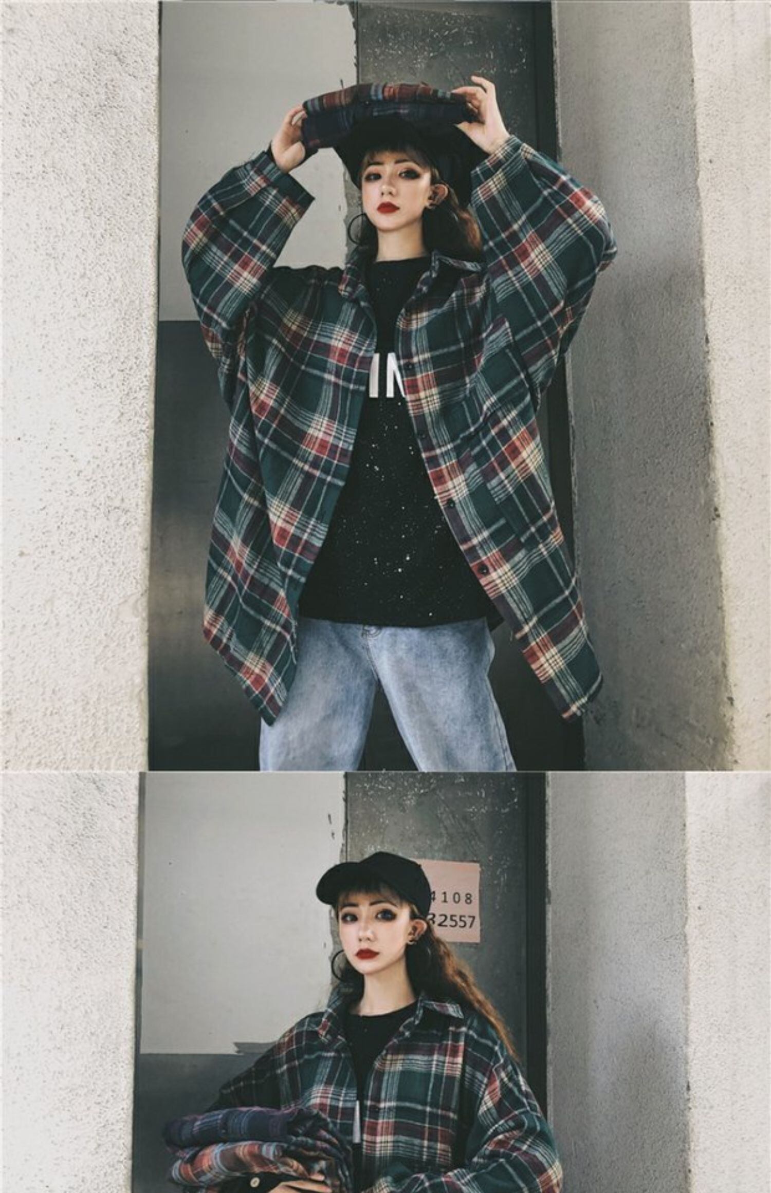 格子柄シャツ スタンダードオータムルーズカジュアルジャケット ロング レトロ 秋物 ケッペル29652039742